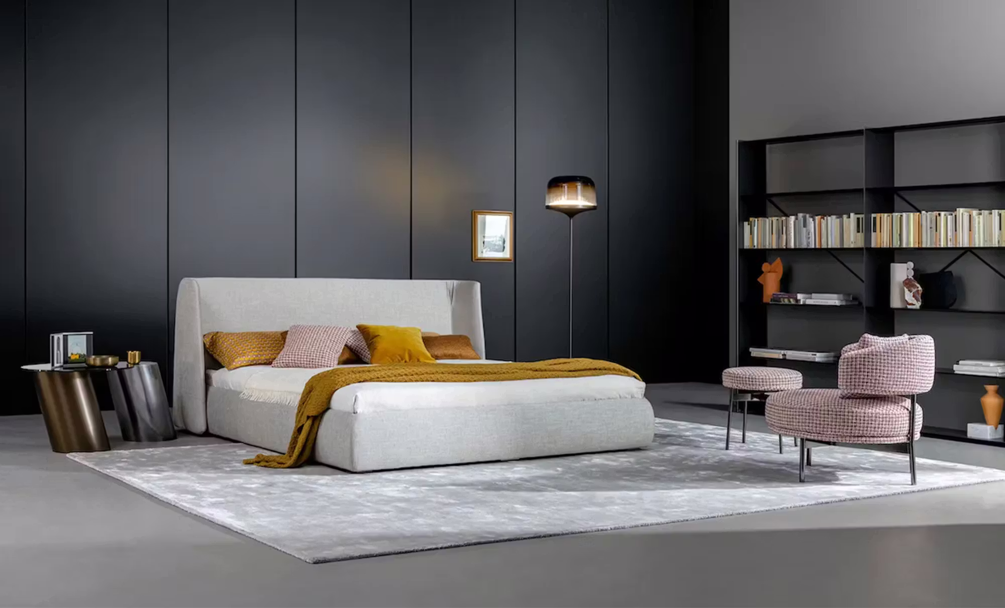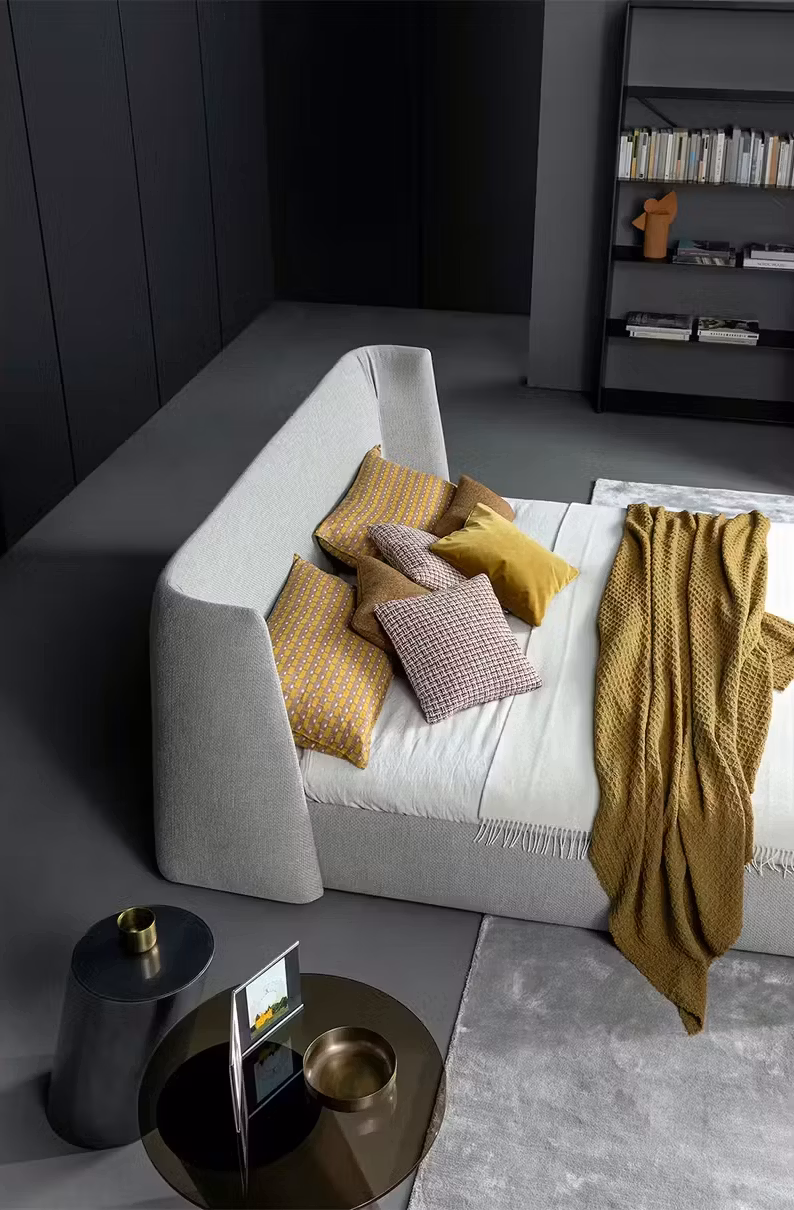 The Basket bed has a recognisable enveloping shape to the soft padded headboard. It is rounded on the sides, which gives the Basket bed a pleasant and welcoming appearance. Shop the Basket bed at Fanuli now.