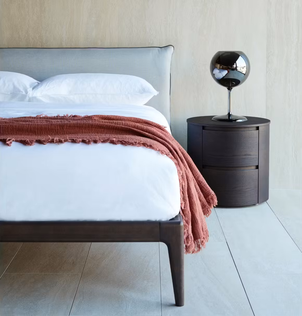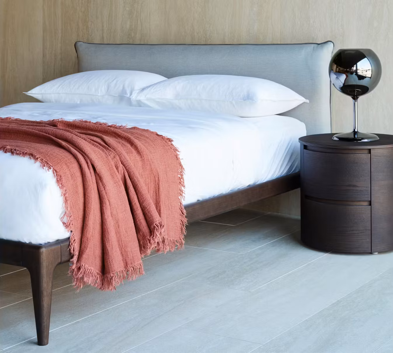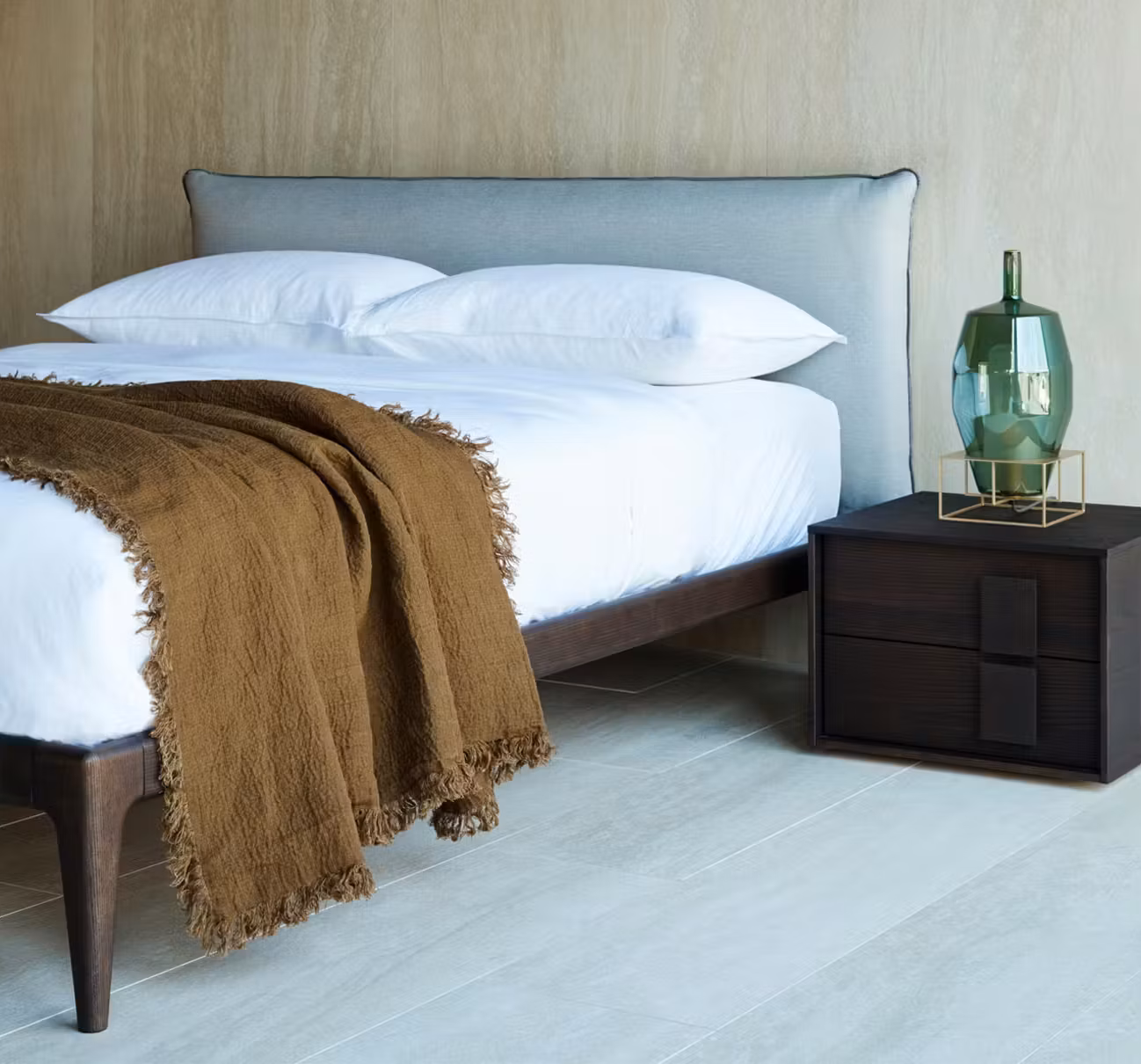 An air of inviting simplicity and informal elegance that adds character to the bedroom, the most personal room in the home. The seam stitching around the linen-covered headboard reveals a sharp eye for detail and provides an opportunity for colour picking with other pieces in the room.