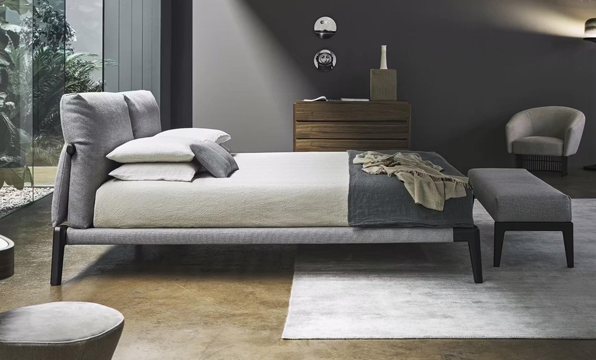 Kriss is a collection consisting of the romantic modern luxury design bed and coordinated accessories, a concept that focuses on the contrast and perfect harmony of fascinating materials: the elegant softness of fabric combined with the traditional solidity of wood. The modern wooden design bed’s structure becomes a visible and characterizing element, while the cushions that make up the headrest provide extra comfort. The result of a continuous aesthetic evolution, the sophisticated combinations of fabric and wood suggest the will to create elegant shapes and solutions, enhancing the qualities of both materials and giving a warm, welcoming and exclusive look. In addition to the double bed, a bench is also available in the Kriss collection.