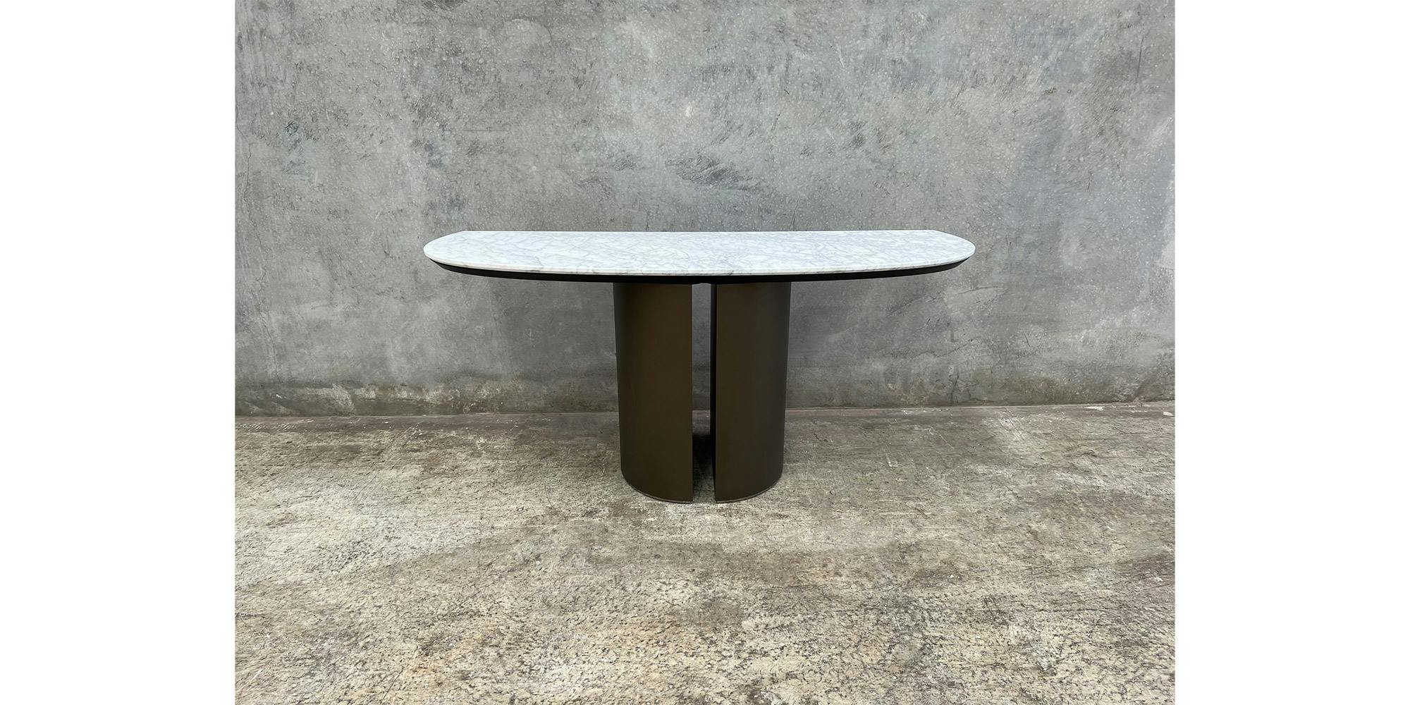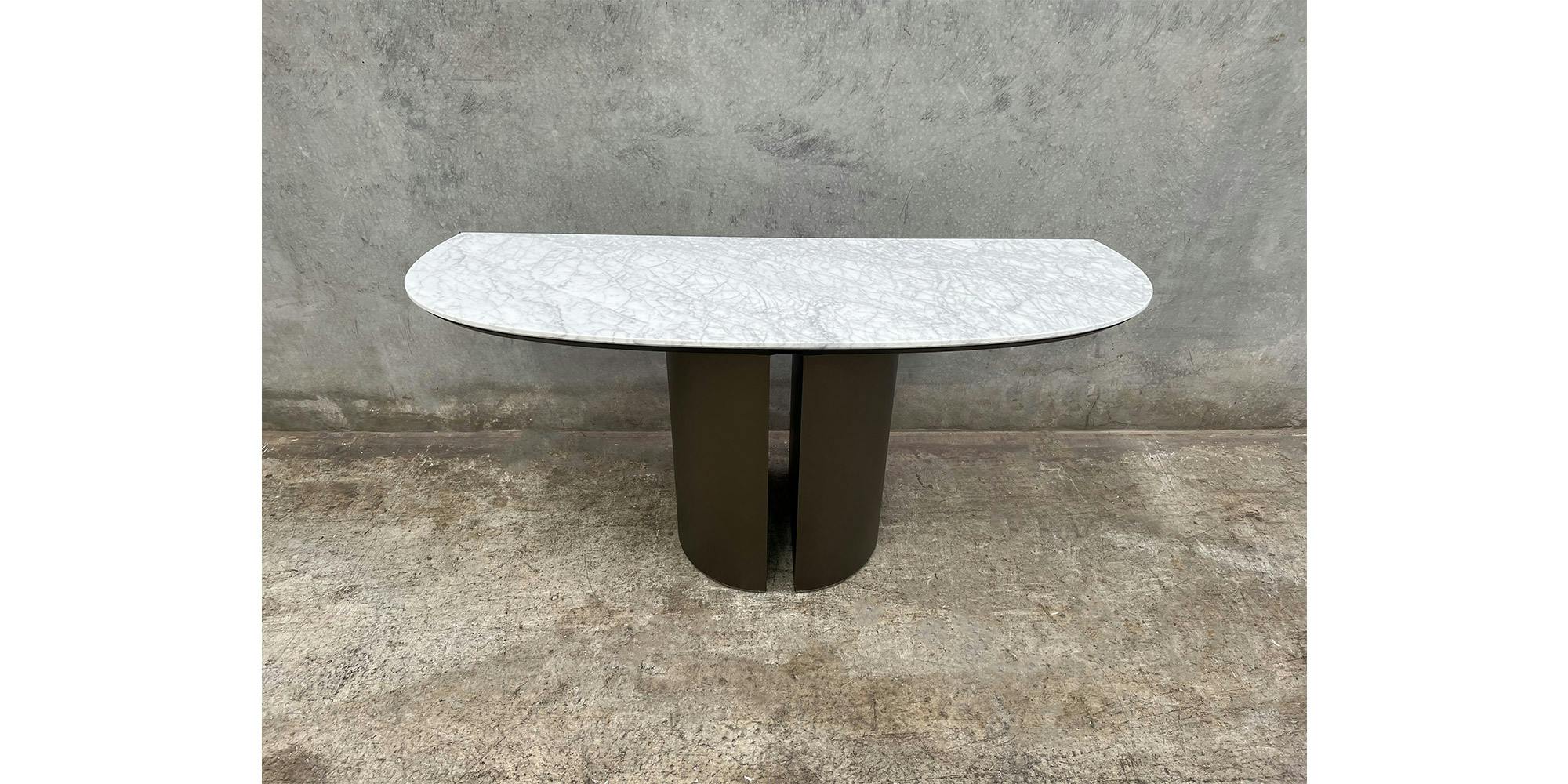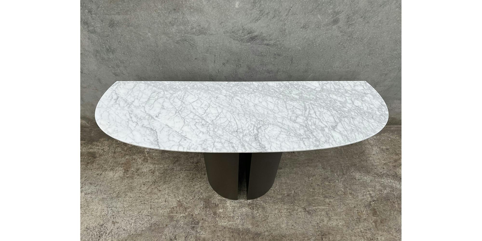 The Dora console with marble top is the modern console with an elegant and sophisticated style. Ollen Pal's design defines the entrance console with the contemporary, simple and essential lines that we find in the painted metal base and the black chromed foot. This modern console, of stylistic excellence and great functionality, is an excellent piece of furniture ready to welcome you when you return home. Available for immediate delivery.
