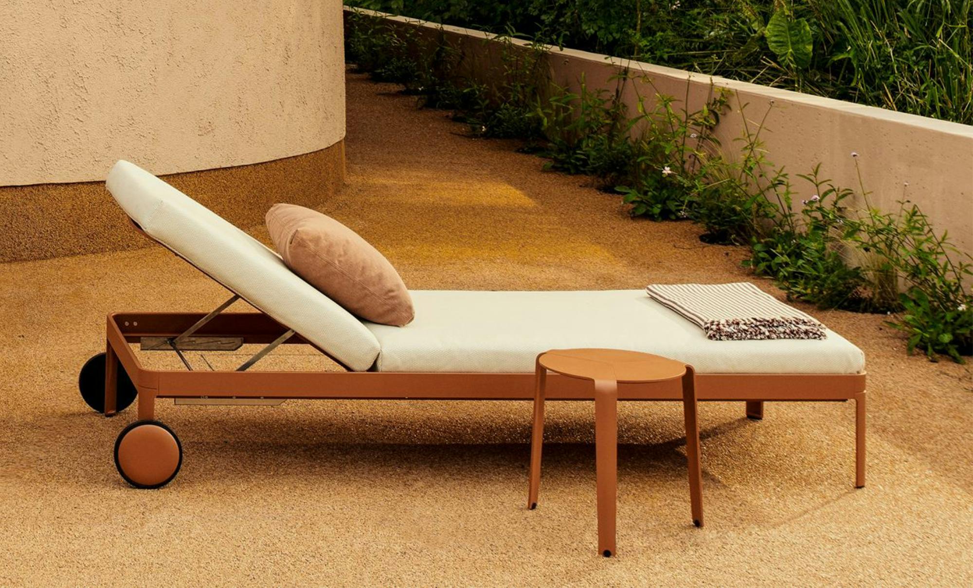 Reissue of the outdoor system designed by Luciano Bertoncini in 2014 with a frame made of 100% recyclable powder-coated aluminium and plastic slats. Sofas, armchairs, tables, and loungers easy to assemble and disassemble. Backrests and armrests are easy to install, thanks to a quick coupling system.