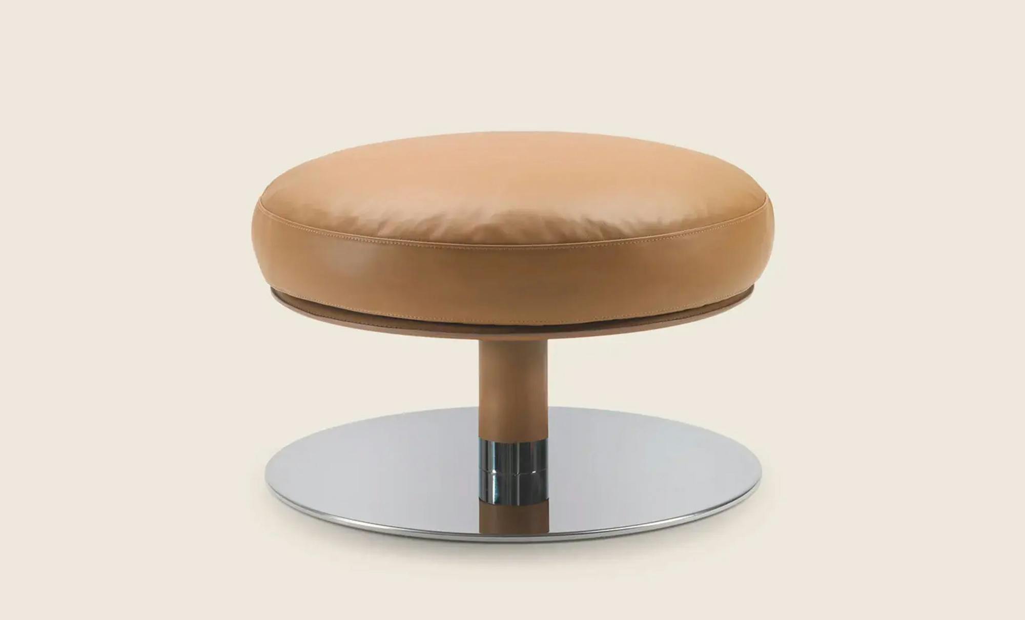 A distinctive feature of the Eri ottoman is its metal base, available in a range of elegant finishes. The generously padded seat cushion ensures the utmost comfort and is available in a wide range of fabric and leather upholstery options.