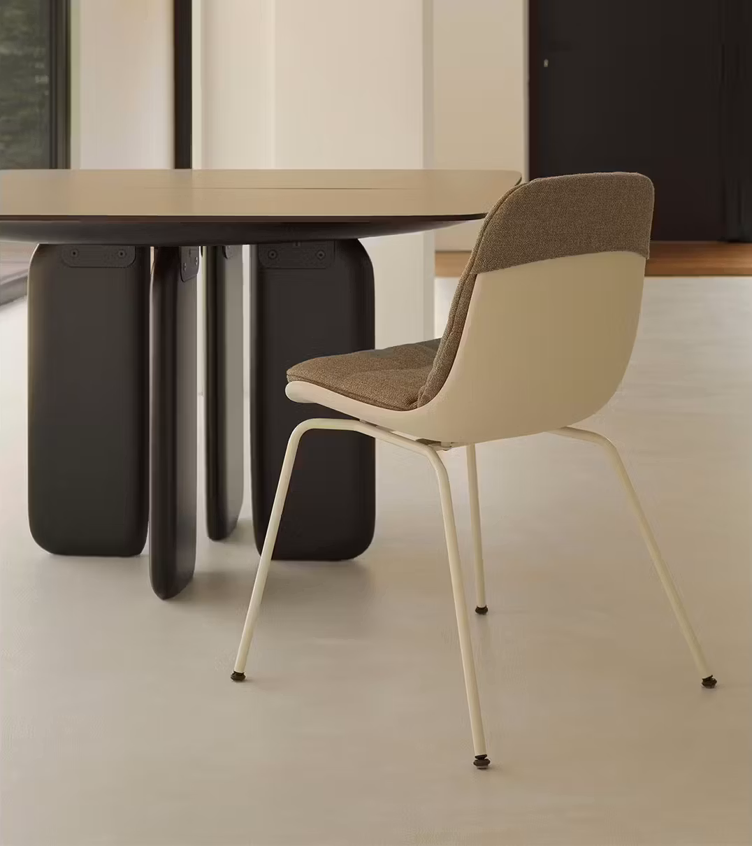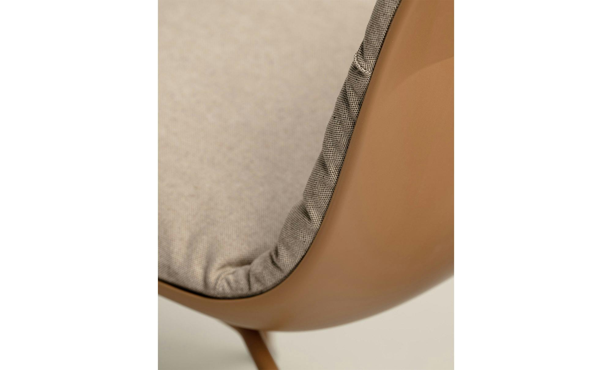 The first chair with a structure made of post-consumer recycled and recyclable plastic, Elephantino is the latest addition to the Elephant collection, a Kristalia bestseller designed by Eva Paster and Michael Geldmacher. The polypropylene structure with armrests recalls that of the armchair, echoing the characteristic reinforced ribbing of the hide version, inspired by the backbone of an elephant. The closed structure can be fully or partially upholstered. Both versions are available with four legs, a wooden base, slide frame base, swivel trestle base or with castors, or with five spokes with castors. The chair with four legs or a slide frame base is also suitable for outdoor use: in this case, the structure can be provided with a hole for water drainage. Interesting shades, bright yet desaturated: a feature resulting from the special composition of the plastic.