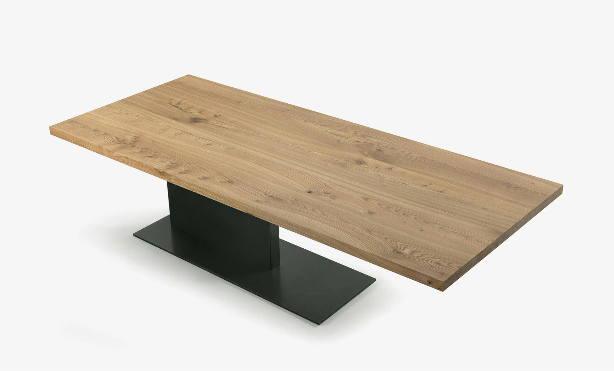 Italian made and design.  The Liam is a beautifully crafted, versatile table which features a solid wood top with an oil and wax finish.  The  asymmetrical metal leg and floor plate combine to create a unique and refined design of supreme quality.  Dynamic in all interior environments.