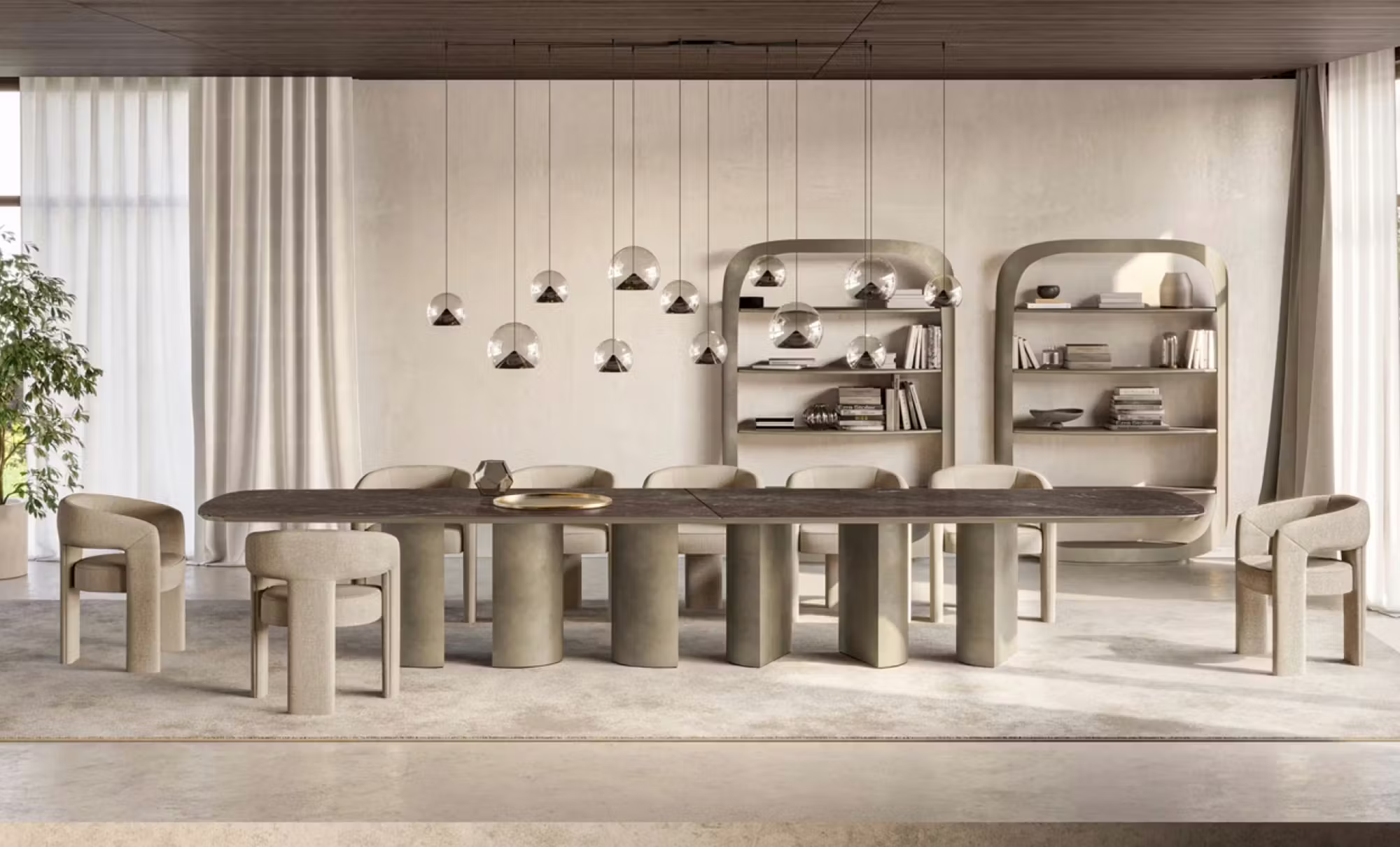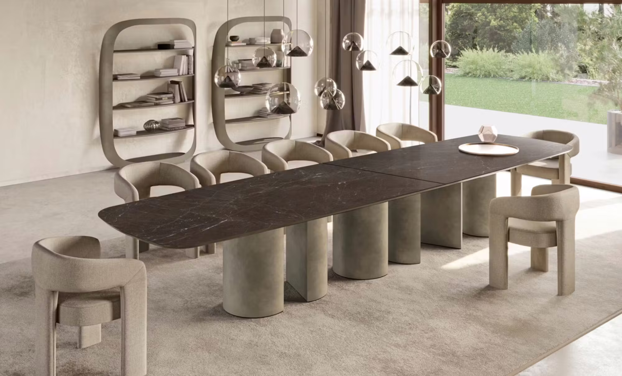 The Plai table with XL ceramic top is a designer piece that brings personality and architectural elegance to any interior.