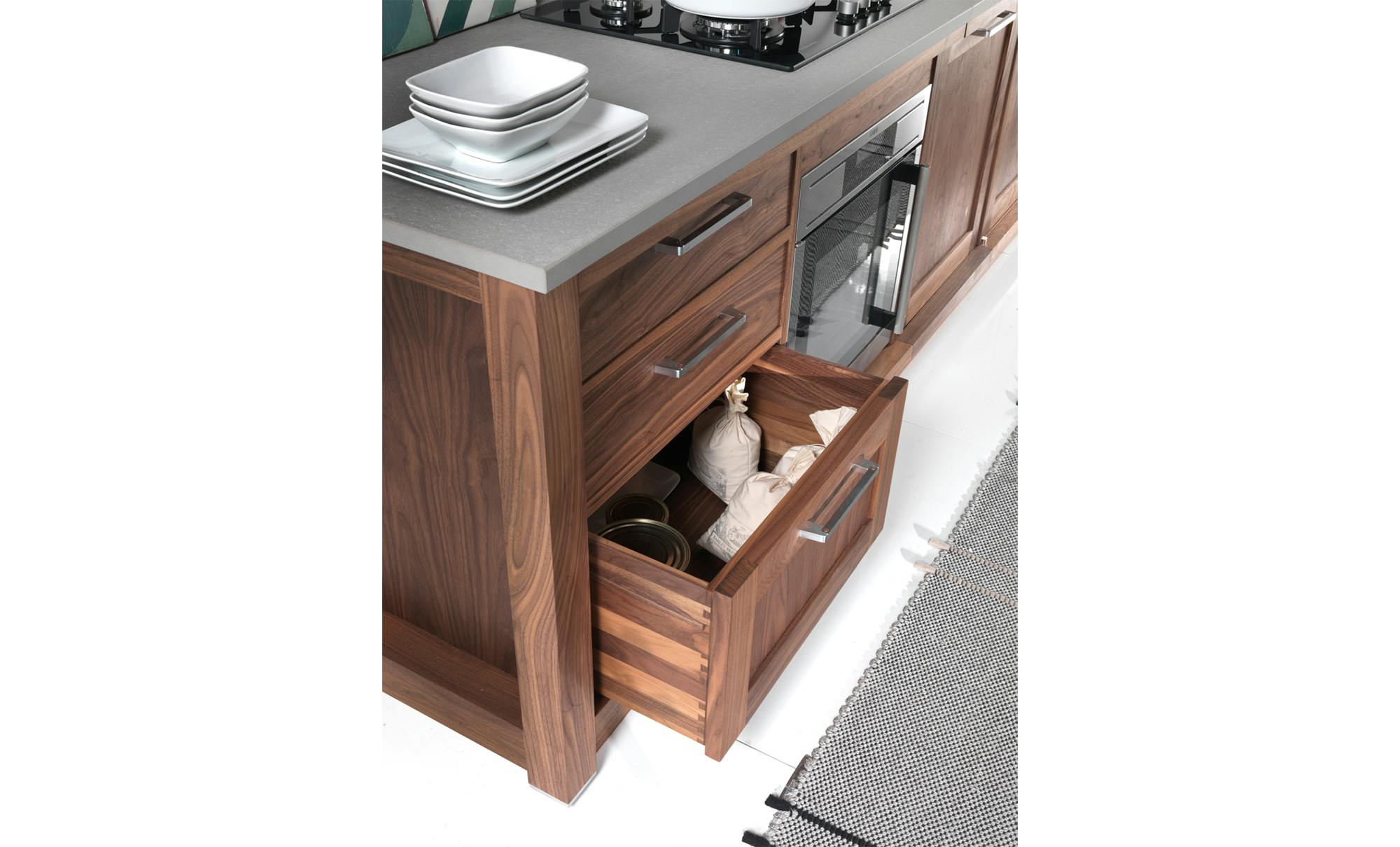 Following many years of experience in the production of made-to-made pieces, Riva designed the kitchen “Seven Days”, realised with multifunctional elements that can be also produced following the customers requirements. Seven Days is a kitchen with use of high quality materials: the external frame is completely in solid wood, the internal structure is in solid wood and plywood. All kitchen elements, like the washing-cooking bench, can be produced on customers requests.