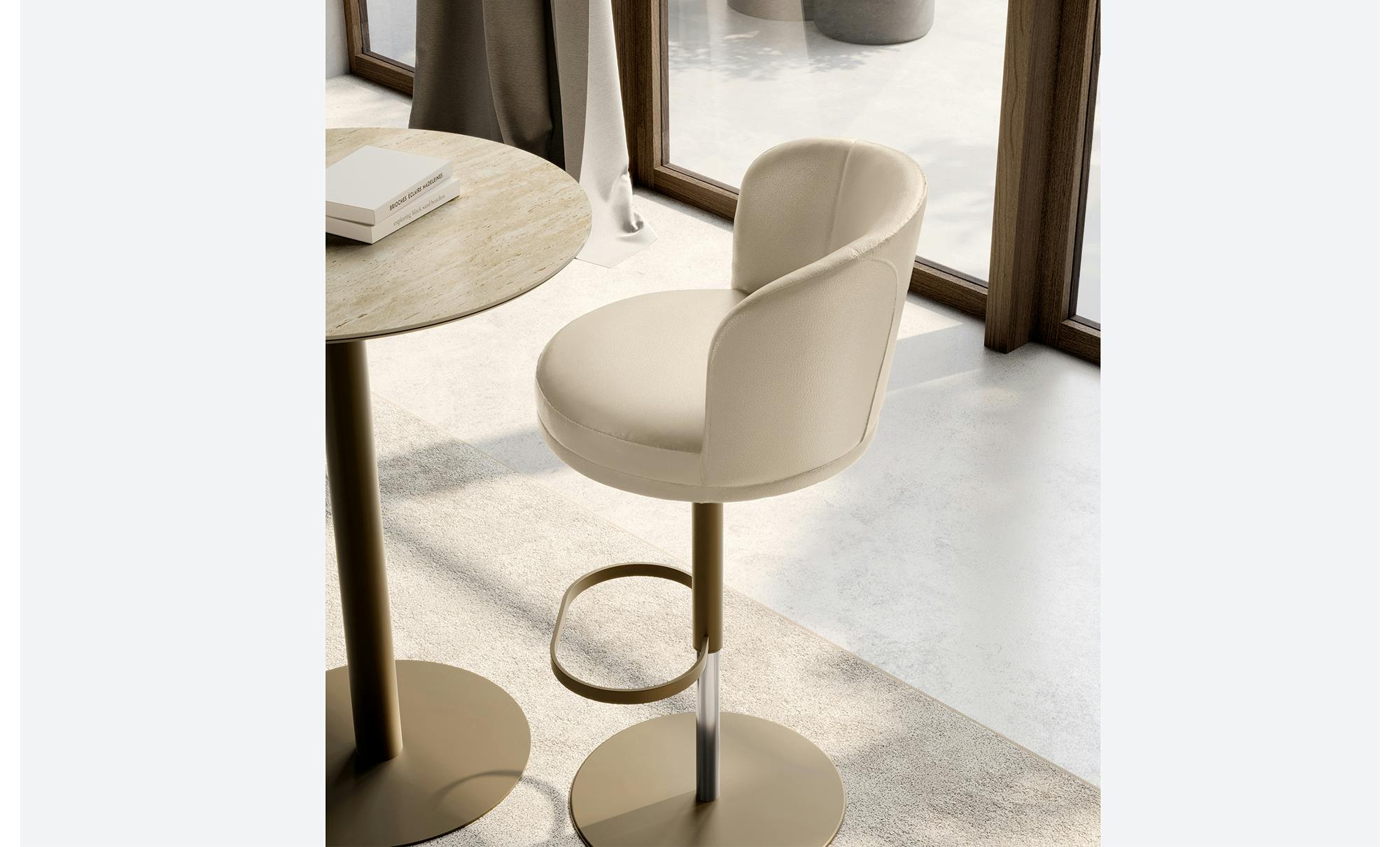 Ginger Stool is the high designer stool suitable for kitchen spaces in residences with a modern style or within locations dedicated to luxury hospitality.