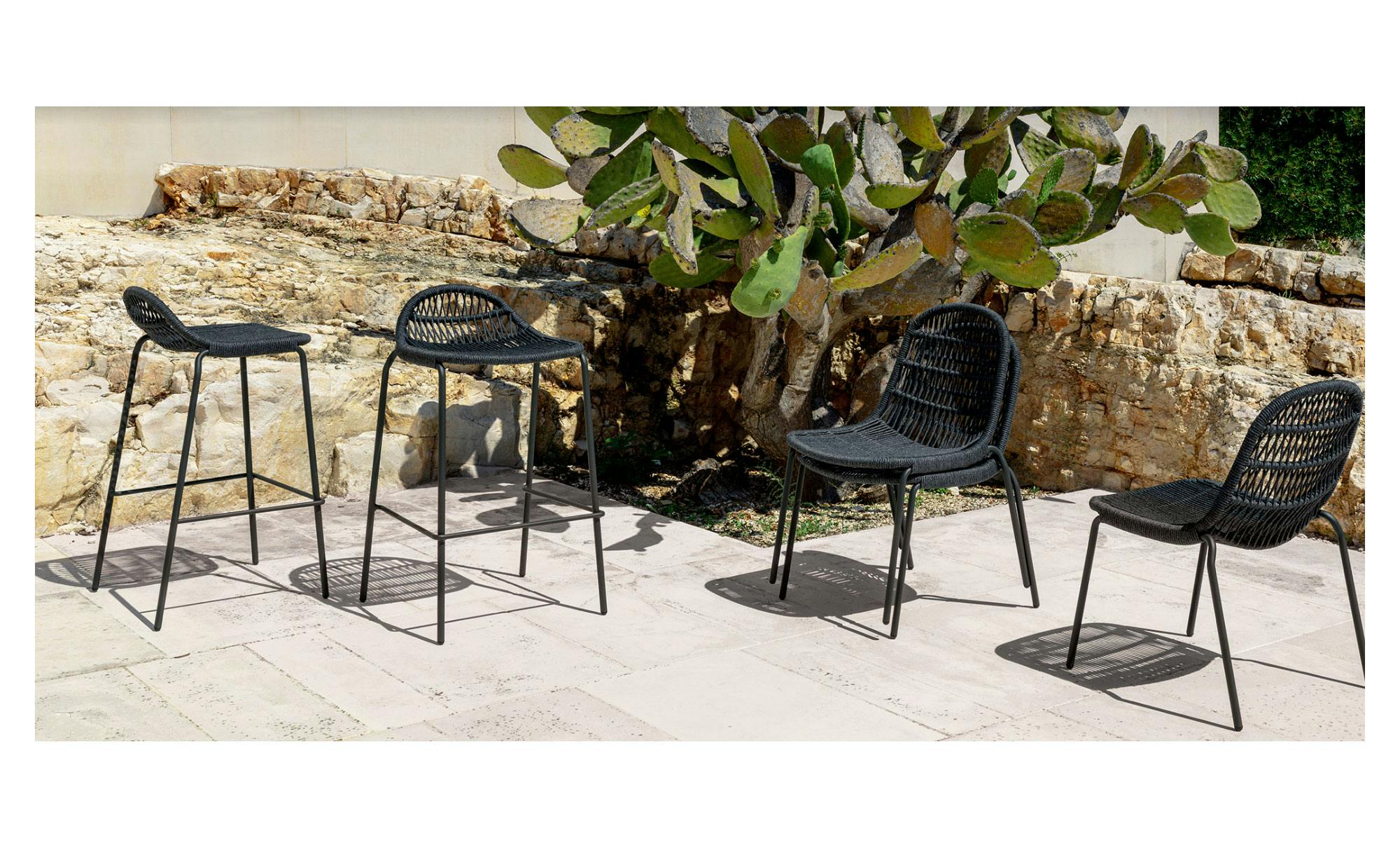 The Bar Stool of Panama Collection is distinguished from other products thanks to the high seat, realized with synthetic nautical ropes, which guarantees the necessary support. Thanks to the stable and solid aluminium of the structure, the product is ideal for completing outdoor furniture as it is weather resistant.