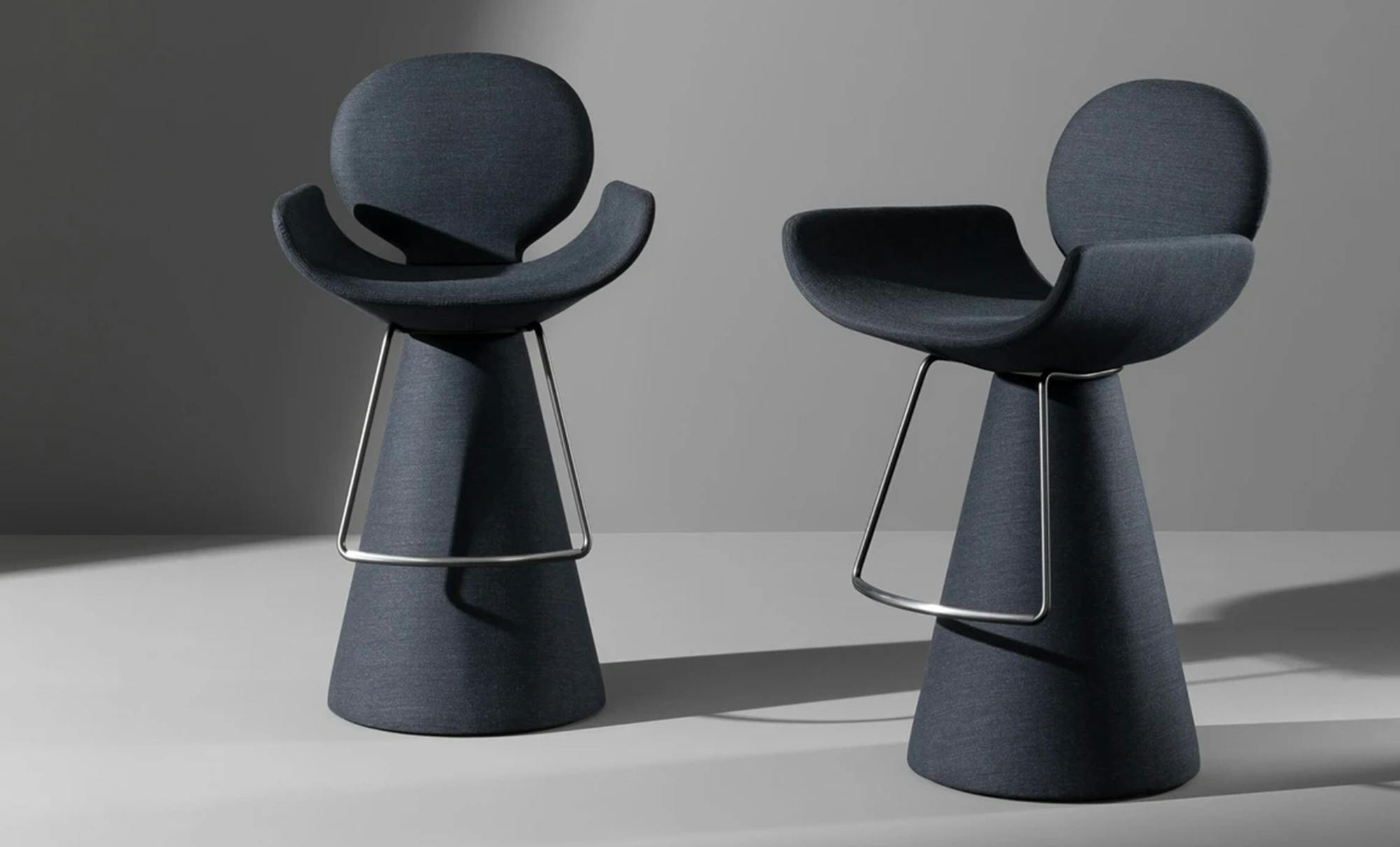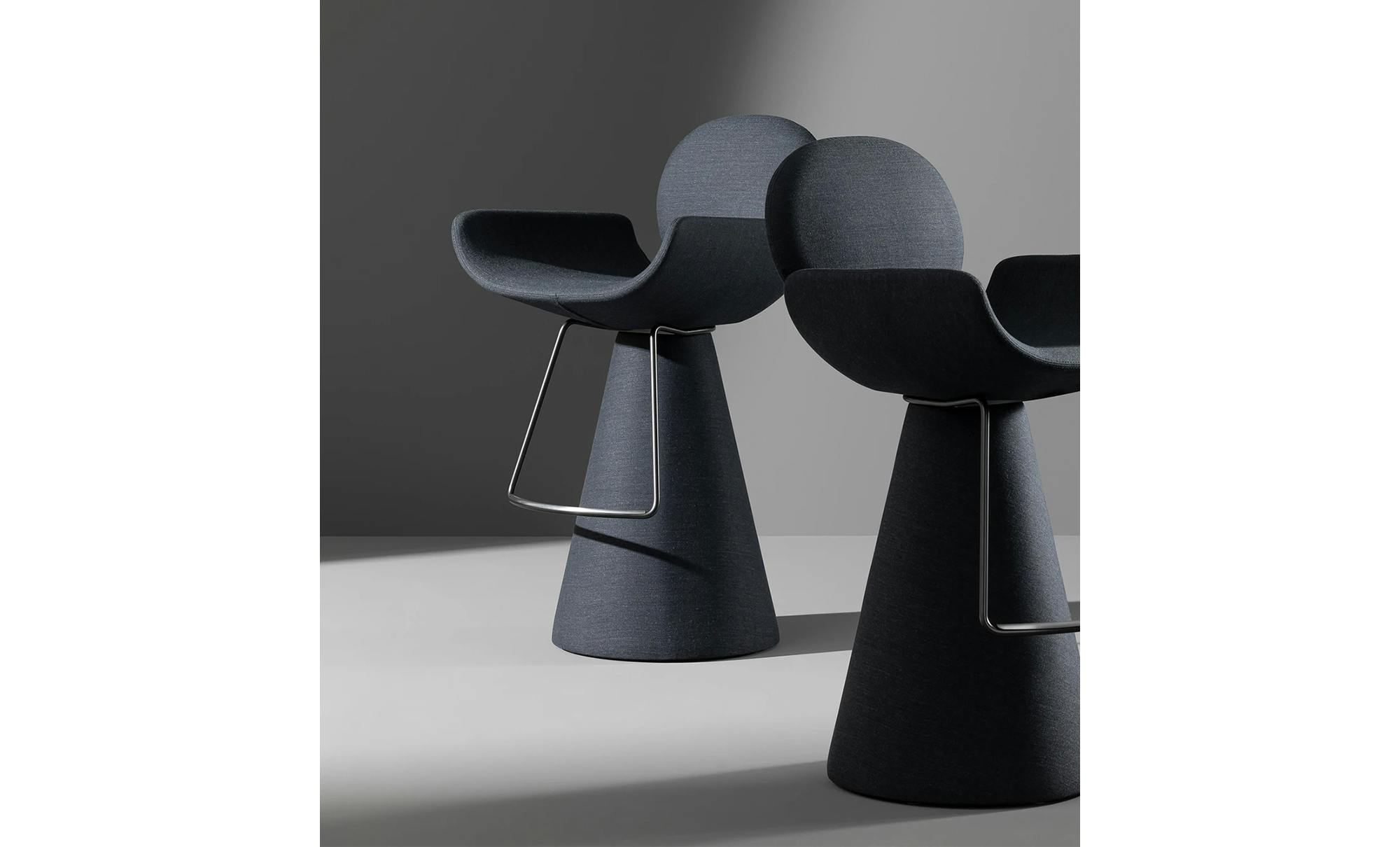 The Youpi too stool expands the Youpi family, enriching it with a slender and functional version of the seat. Designed by Fabrice Berrux, in this fixed-height stool the circular backrest complements the generous and welcoming support surface, while the conical swivel base ensures solidity and dynamism. A practical metal footrest adds comfort and elegance, making Youpi too the perfect stool for contemporary settings, from living to contract spaces.