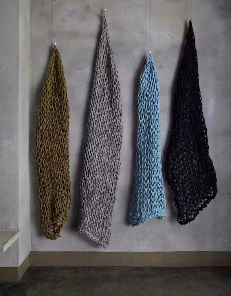 A soft and elegant product produced by blending Merino lambswool and Kid Angora Goat. Individual pieces are made from pure Merino. The quantity of layers of combed wool determines the thickness of the product. Soft Lambswool is used preferably when the product comes close to the skin and blended with Mohair, the soft drape and sheen becomes a delicate and luxurious fabric with a crinkle-like texture.
