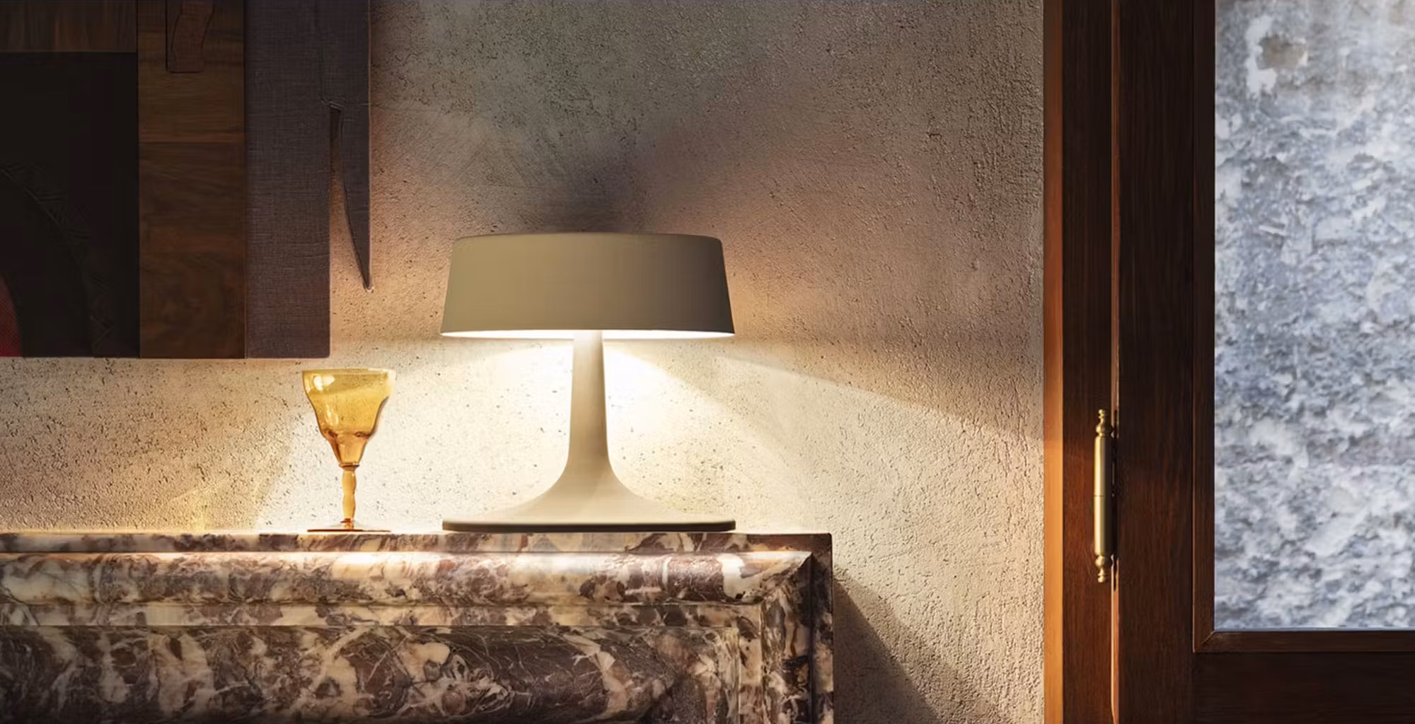 Available in floor and table lamp options. The lamp comes in varnished metal in glossy white, matt gold, bronze, rose gold, graphite, red and maron glace.