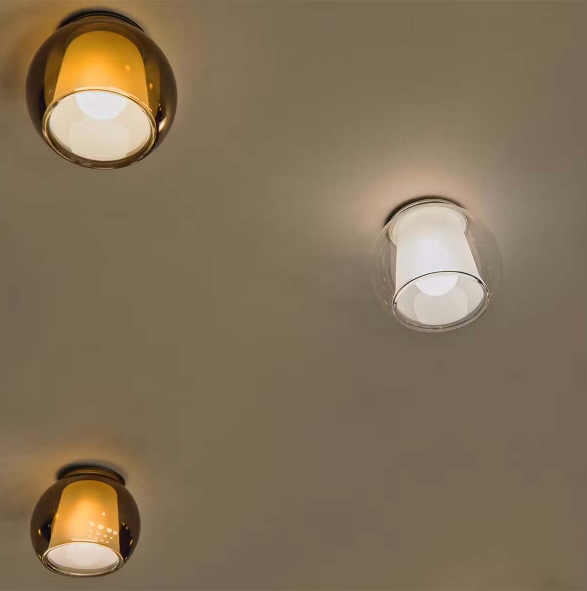 The Glo family expands with a small yet basic transformation that allows it to be installed on the ceiling: a cut on the sphere, which doesn’t affect its recognition, but gives it an innovative perspective. A new collection is born, which renews and enrich the iconic Glo, maintaining the family feeling.