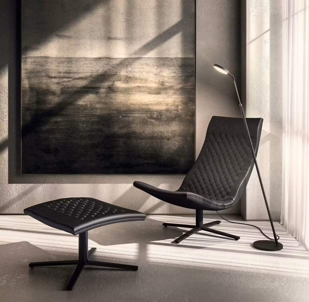 An extreme neat shape meets the rich hand woven leather in the Spoon collection, a small masterpiece of beauty and functionality, with swiveling stem and shell.