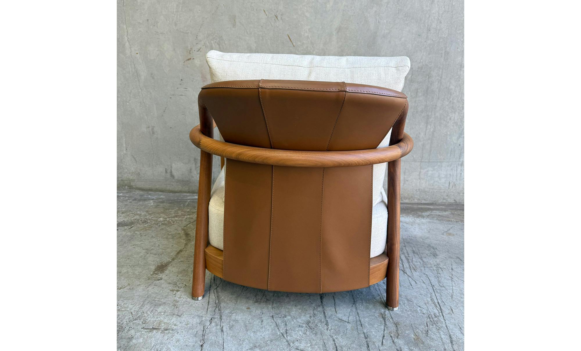 The Alison armchair draws upon Scandinavian design tradition, reinterpreting it through a completely contemporary lens. The sinuously curved structure is made of solid wood and the seat is generously padded. The saddle hide seat back provides optimal support. The combinations of materials and colors can be as endless as they are unique by marrying the structure in solid wood, stained in many shades, with the seat back in saddle hide, available in an array of colors, and the padded seat that can be upholstered in any of the exclusive fabrics and leathers from the Flexform collection. Thanks to its scaled-down proportions and timeless charm, the Alison armchair is supremely at home in any setting.