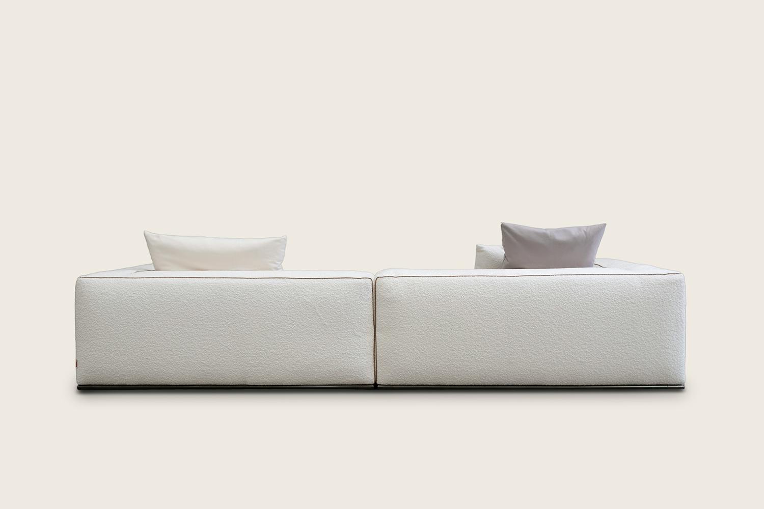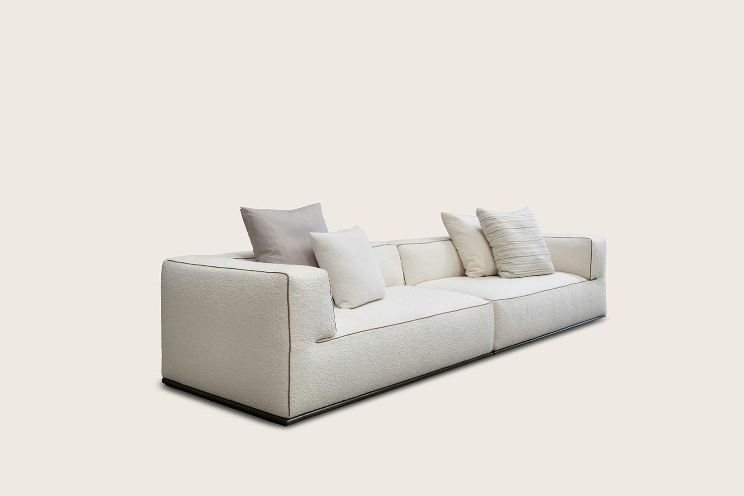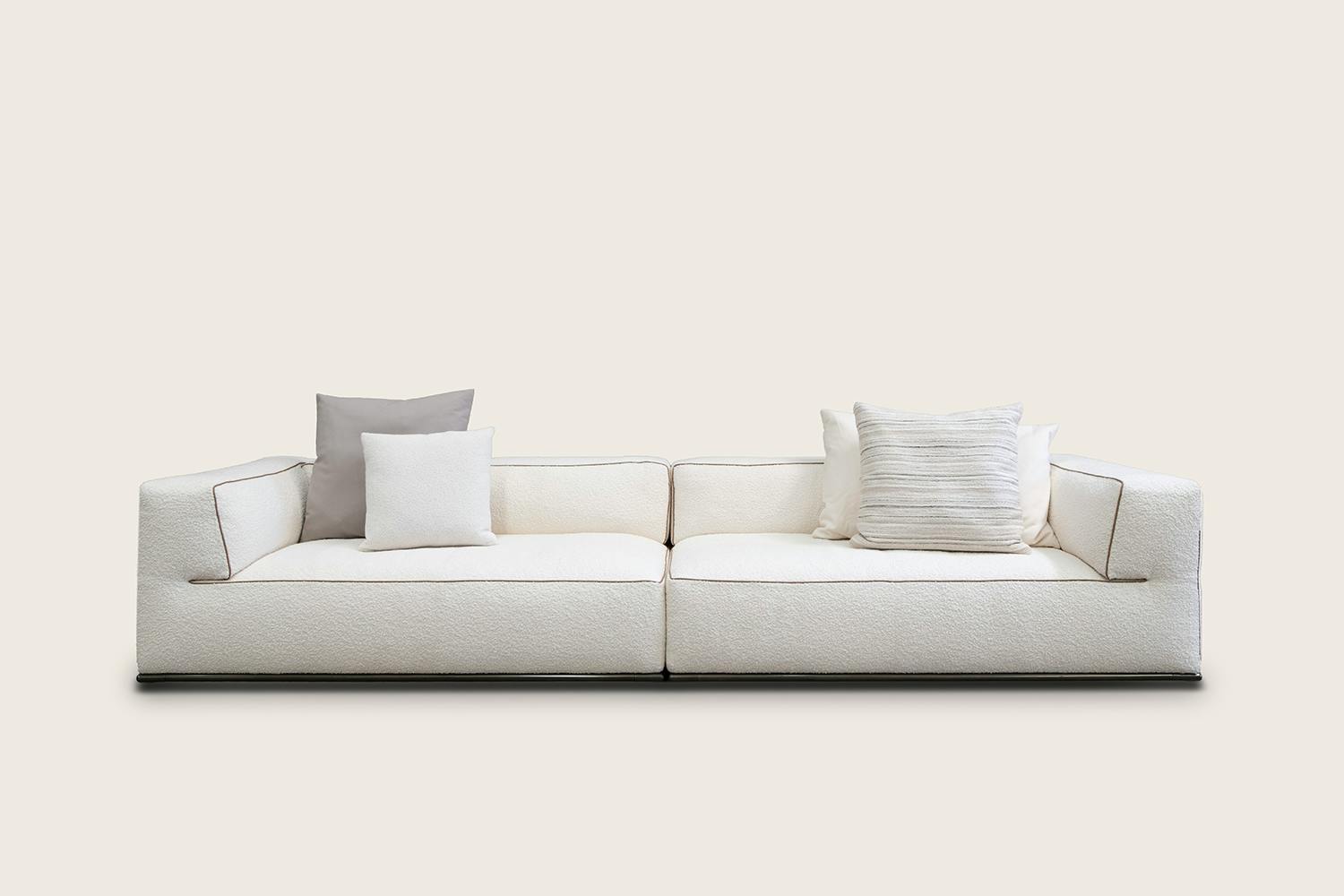Composed of soft upholstered pieces that can be combined among themselves, the Perry seating system heralds a new way of designing living spaces with innovative arrangements, using modules whose irregular shape makes it possible to break up the linearity of furniture configurations lending them a more dynamic flow and more casual appearance. Contours generously padded in goose down, discreet proportions, sophisticated tailoring details – like the piping that outlines the silhouette of the upholstered pieces – are just some of the distinctive features of this unconventional design.