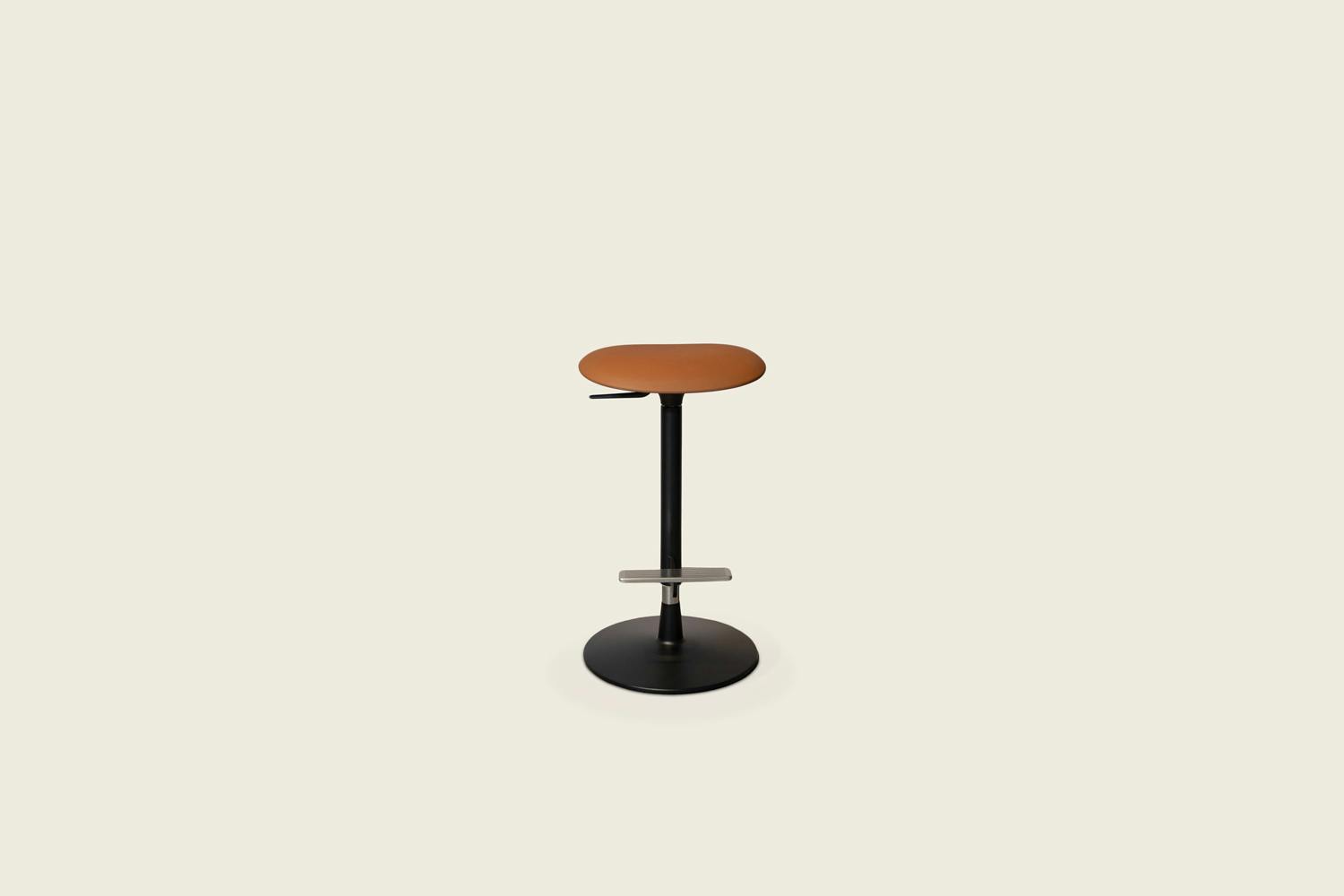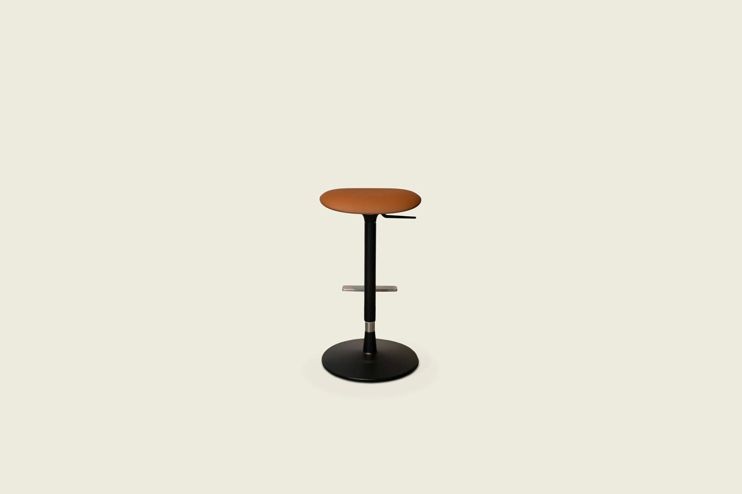 Pilat is a swivel stool that can be adjusted in height by means of a gas-lift cylinder. It features simple lines and timeless shapes: the disc-shaped base supports the central element and a seat with rounded contours, thus ensuring an ergonomic seat despite its limited depth.