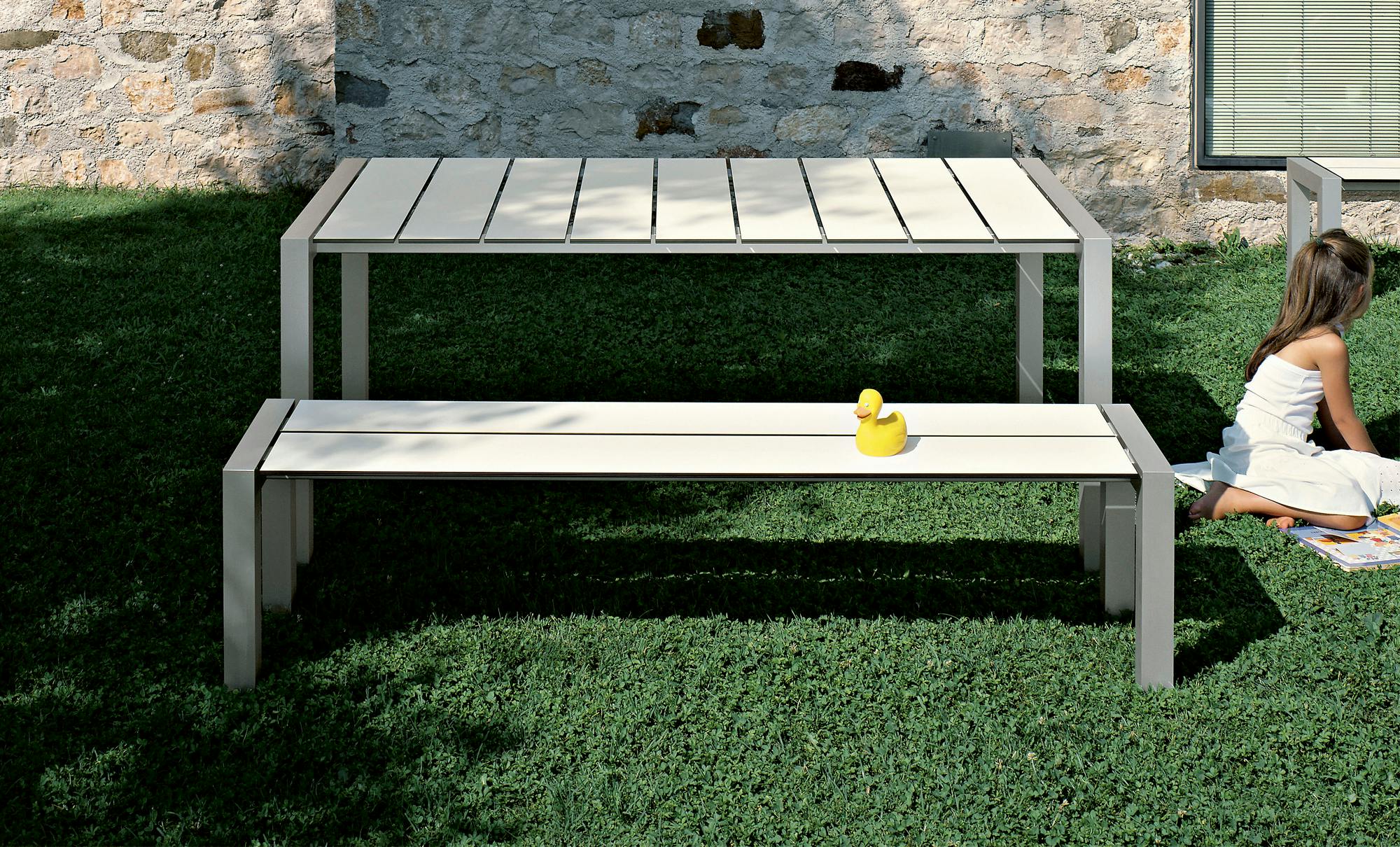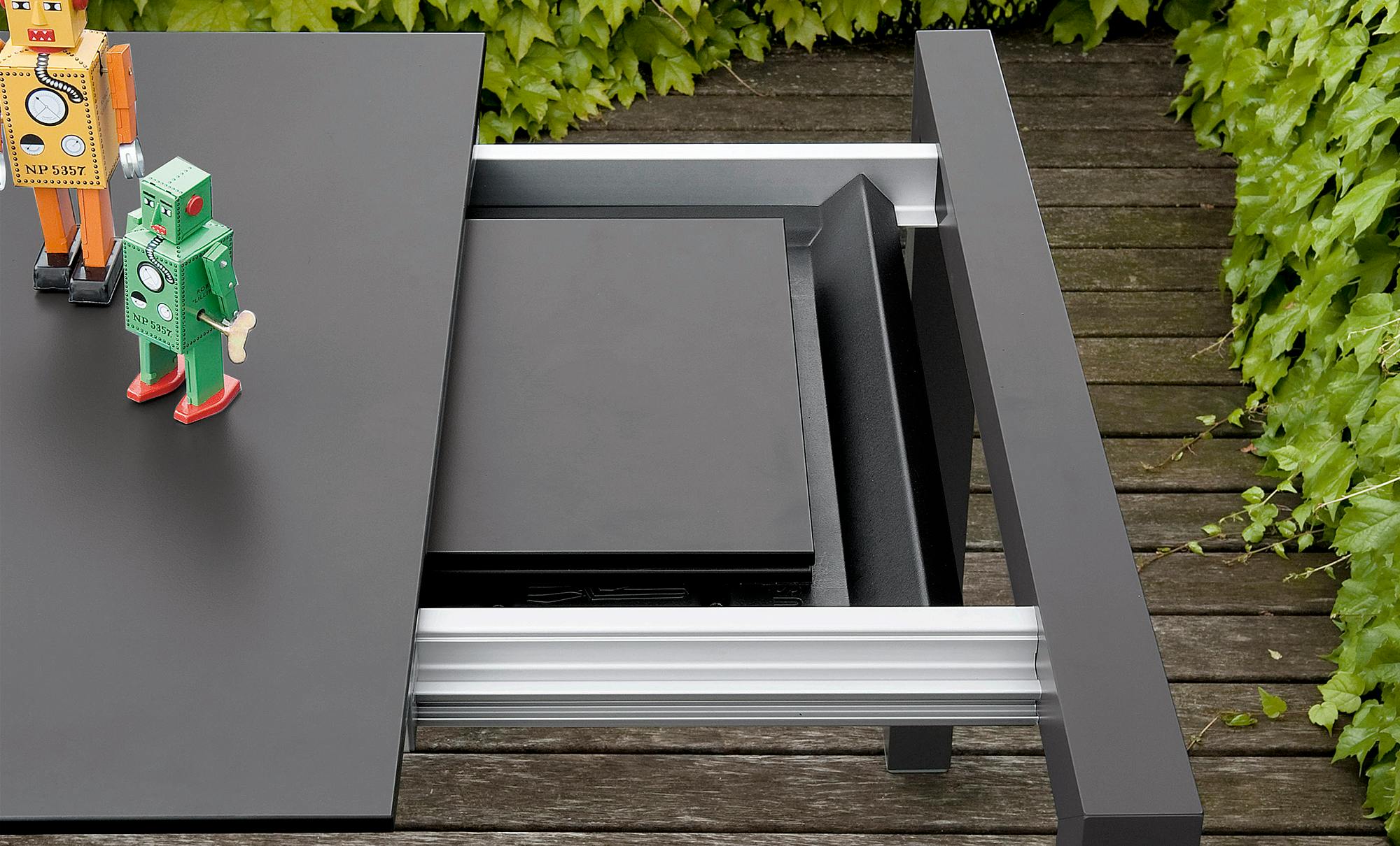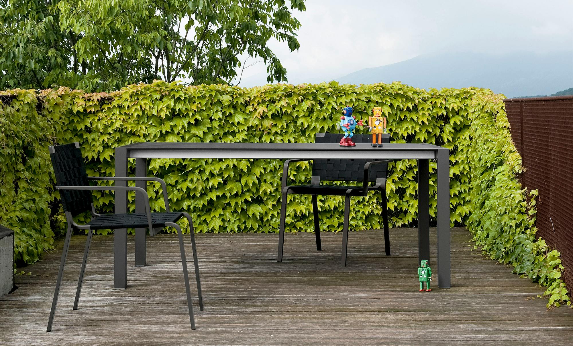 The Sushi tables are Italian made and designed by Bartoli Design for Kristalia. A Sushi dining table is a highly functional furniture piece available in stock with an extending mechanism. It's material lends itself to being perfect for outdoor and indoor use.