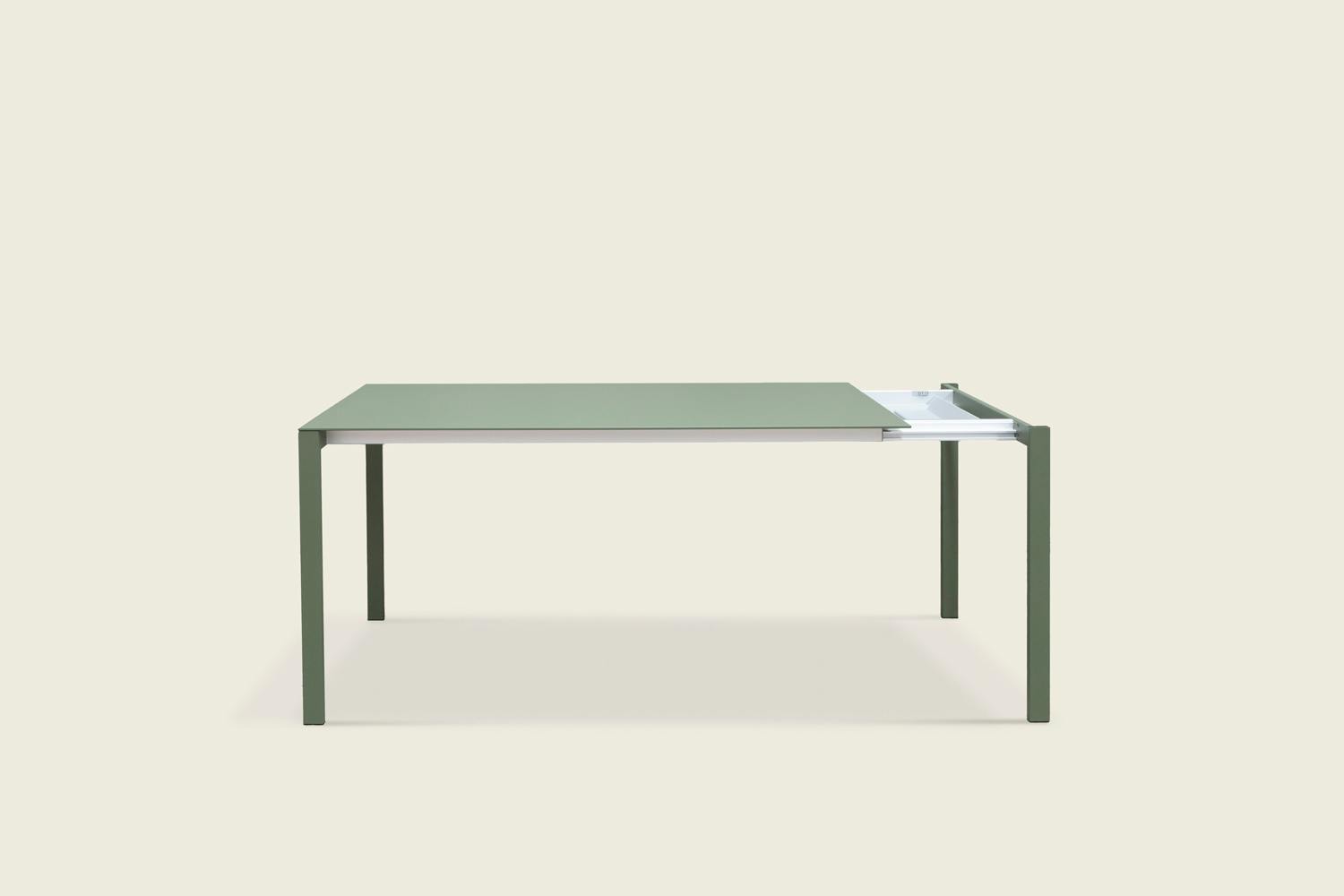 At the limits of sheer minimalism, the top of Thin-K is just 6mm thick and can extend to considerable lengths without losing its linearity and sturdiness. It is narrow enough to appear suspended in the air. Designed by Luciano Bertoncini, Thin-K is made entirely of metal, with external leg details and a top in aluminium, gloss or matt glass, and wood veneered aluminium – resistant, durable and completely recyclable materials. The textured finish of the aluminium top makes it smooth and pleasant to the touch.