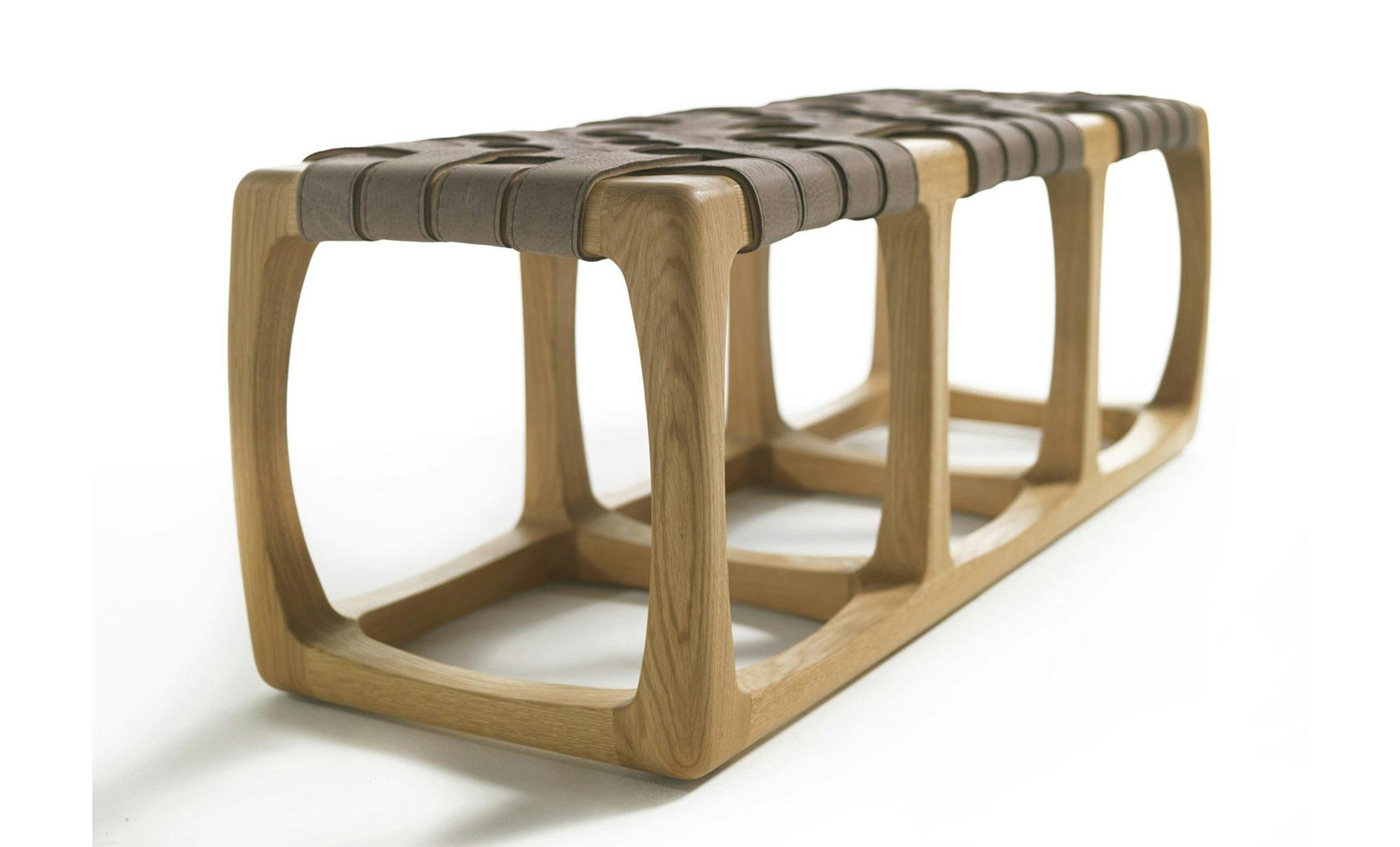 The Bungalow bench has been designed by Australian Jamie Durie and crafted for Italian furniture designers Riva 1920 in Italy. The Bungalow bench features a wooden structure with rounded-off corners and leather strapsfixed to the structure to give a regular geometric pattern. Bungalow is ideally suited either for the dining or living area or contract interiors.