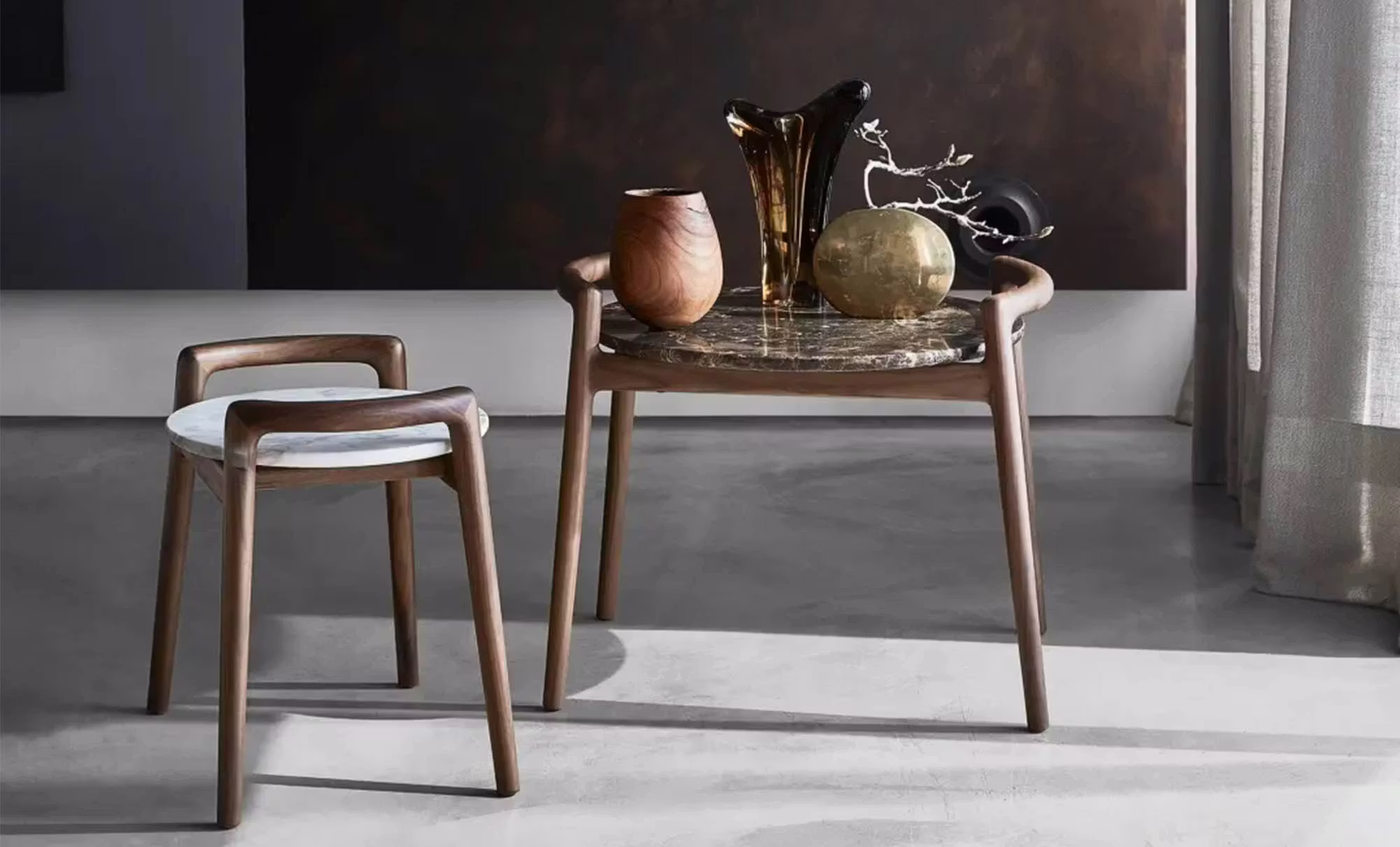 Ascanio is a solid wood occasional table that not only serves a practical function but also lends an air of discreet elegance to any room. The table’s solid wood structure makes it easy to move around in the living room, for placement near the sofa or an armchair. A number of tasteful combinations of materials are possible: solid wood for the frame; wood or marble for the top. The Ascanio occasional table is available in three sizes.