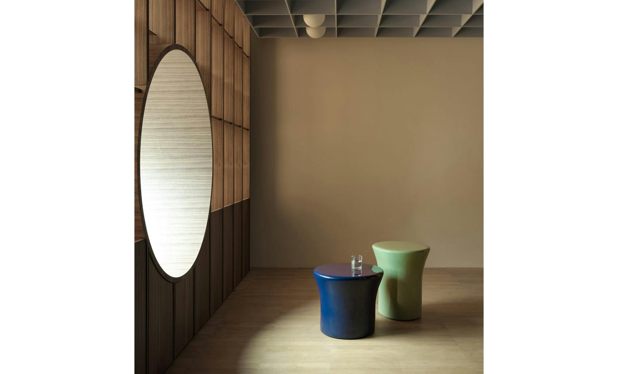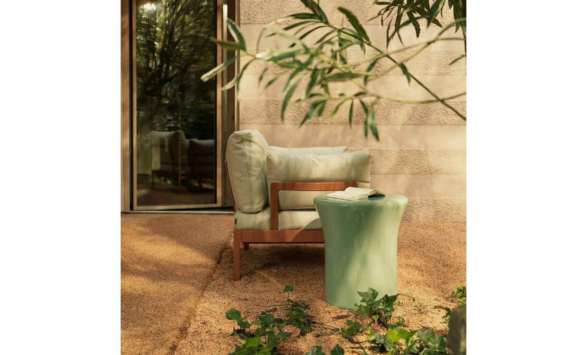 Indoor/outdoor low tables with an open and functional shape that explore the various proportions of fungal species when grouped together. Positioned side by side, they create fluid compositions where each element, despite having different dimensions, integrates perfectly with the others.