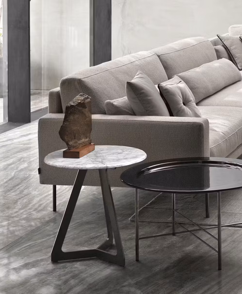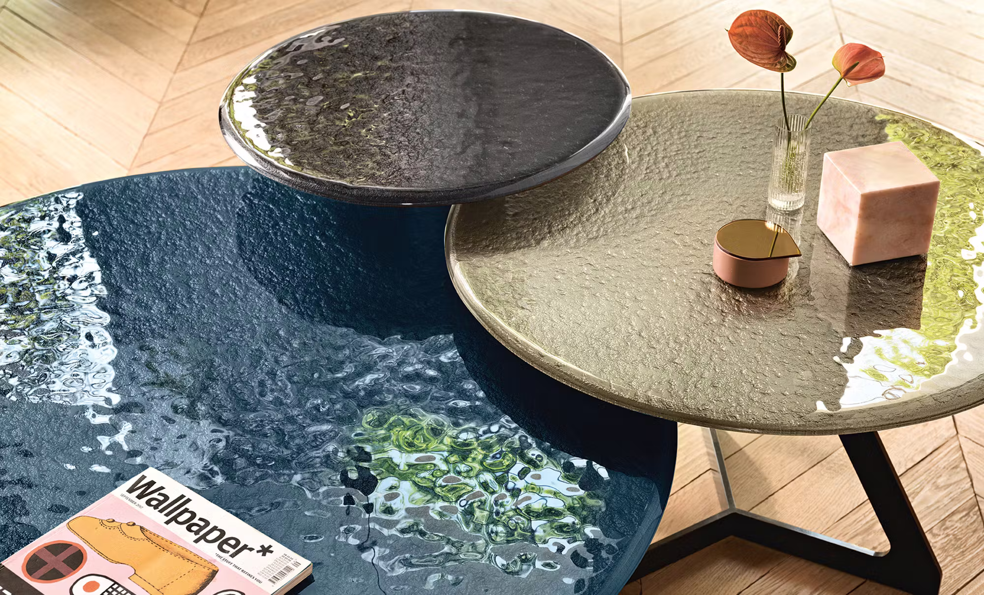 Add serene style to your contemporary living room with the gorgeous Lakes coffee table. Aptly named, the fused glass surface resembles the top of a lake with the slightly textured effect, while the tripod base is eye-catching with its metal finish and playful use of geometry.