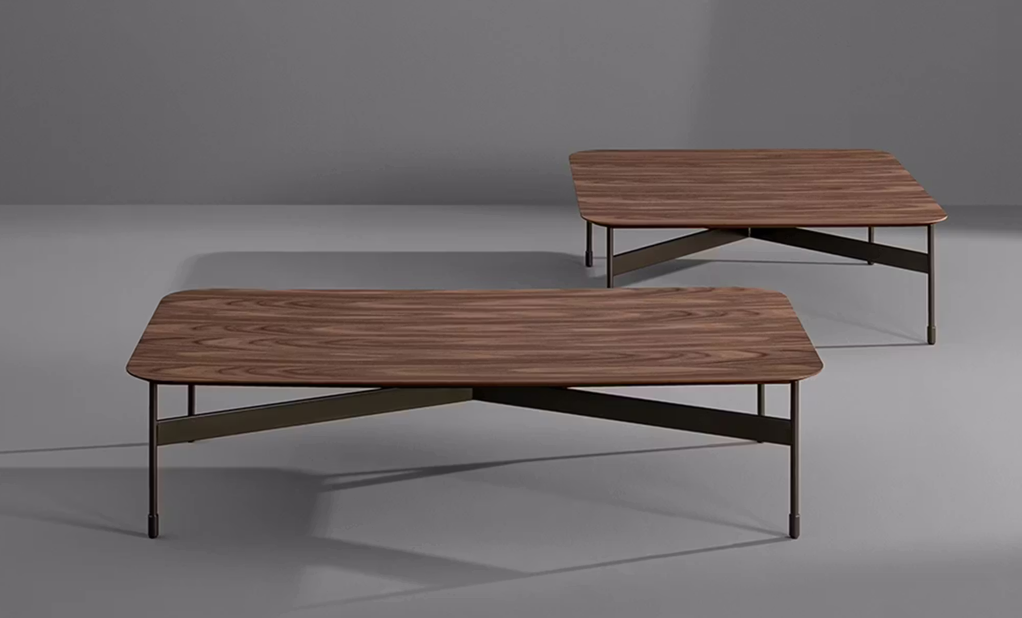 Different in size and shape, the coffee tables of the Peak collection share a slender and essential outline, typified by a flared top section and thin metal legs. The diagonal buttressed base fulfills a twin role: on the one hand it reinforces the load bearing resistance, while on the other it sums up the style and sophistication of the piece. The tremendous attention to details is revealed even in the smallest elements, such as the support feet which provide a sense of stability both physically and visually.