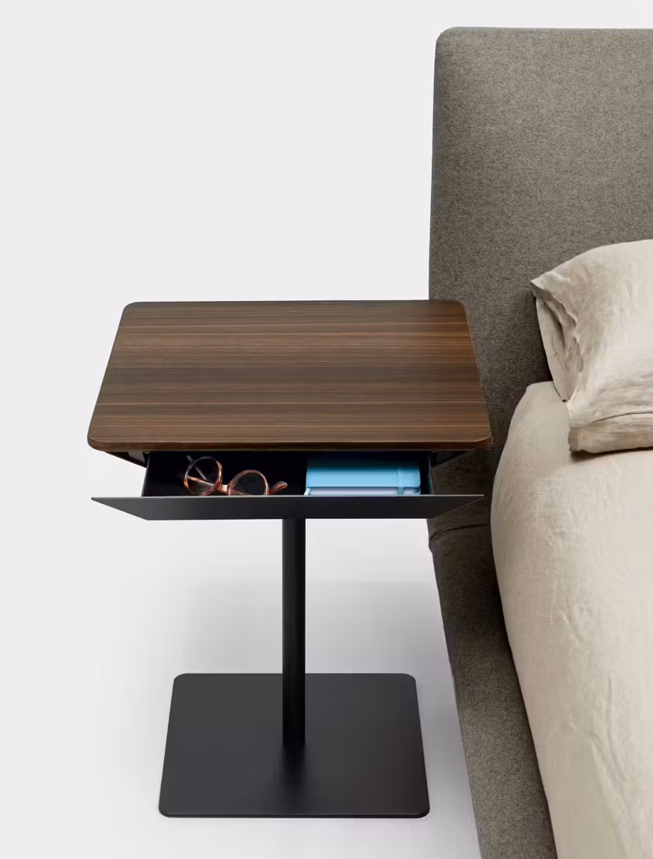 TAG is a collection of low tables in various shapes and sizes. The minimalist profile makes it ideal for the living area and in bedrooms. TAG low tables are available with round and square tops, in three different heights and two widths. The 45° edging is aesthetic and functional, making the top look thinner and allowing for the ease of hiding an optional drawer. Made and designed in Italy.