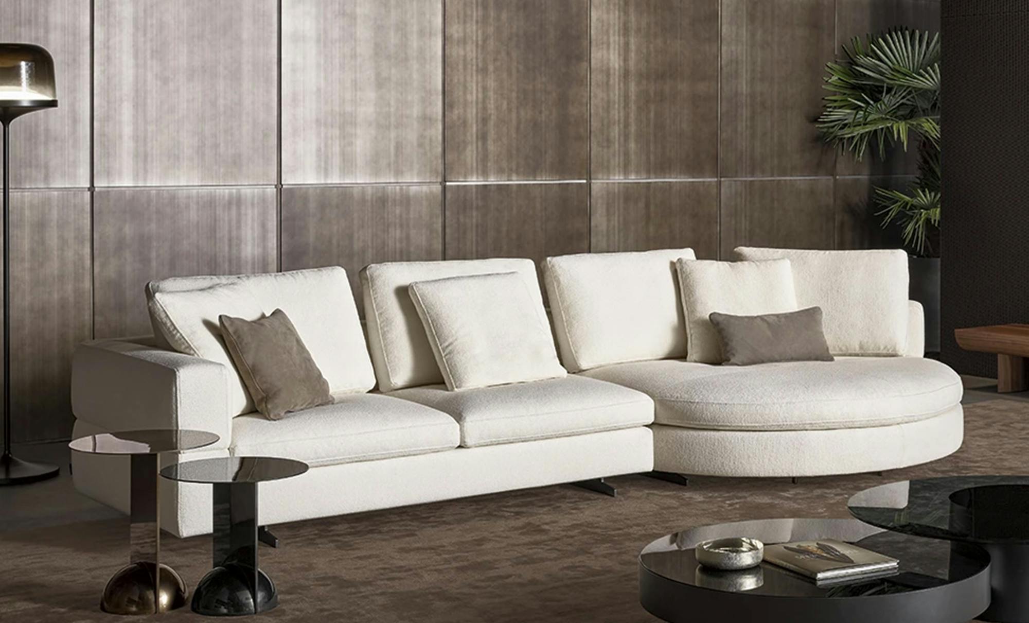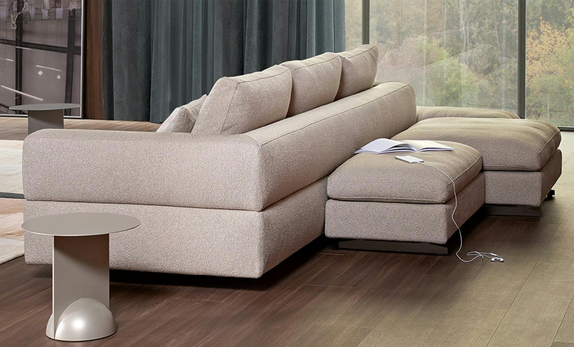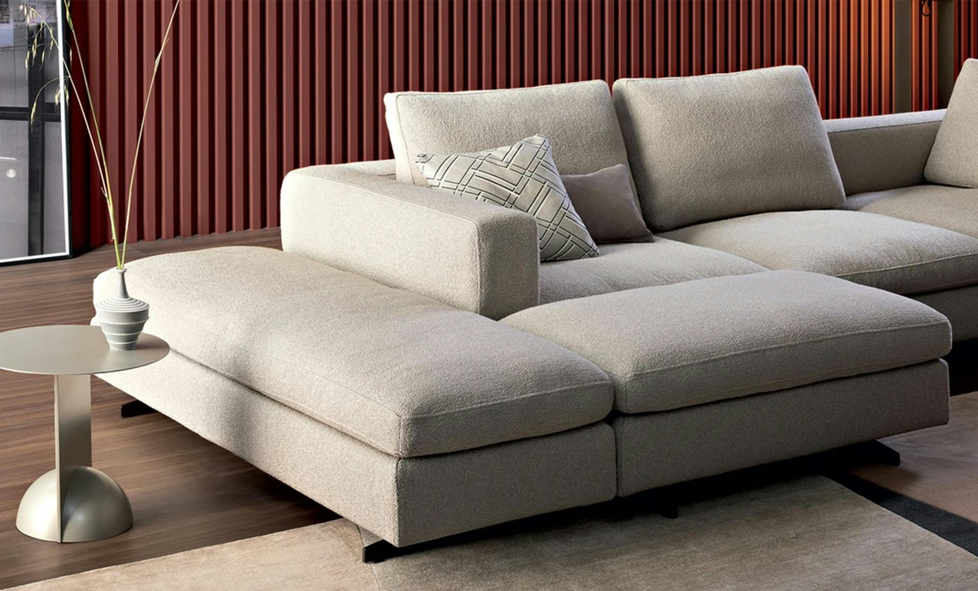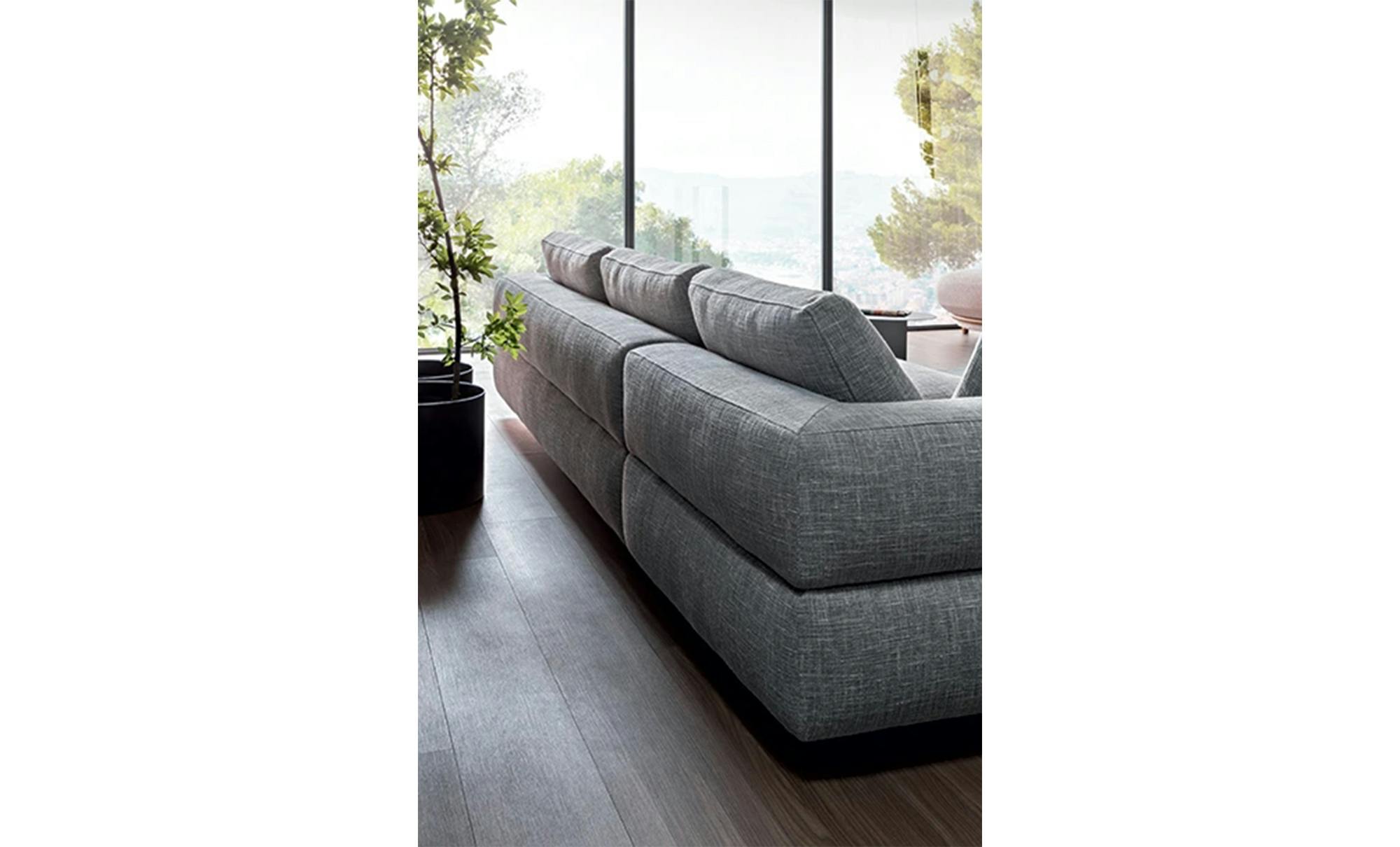 Ever More stands out for its particular backrest, which embraces the seats and gives the living area a note of softness and elegance. The keyword is maximum personalisation. Thanks to the many elements from which it is possible to choose, it is an extremely versatile modern sofa with high back which adapts to every style or space requirement. Indeed, it is possible to create the perfect sofa composition combining a wide range of modules, such as poufs, corners and chaise longue: the backrest, therefore, becomes a true “trait d’union” of an island with 360° freedom. Ever More can be also placed at the centre of a room, to create a convivial space. The upholstery is completely removable.