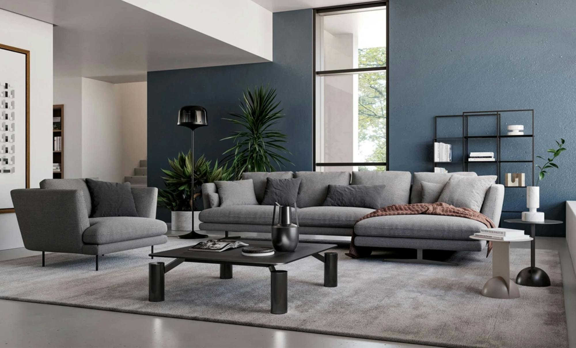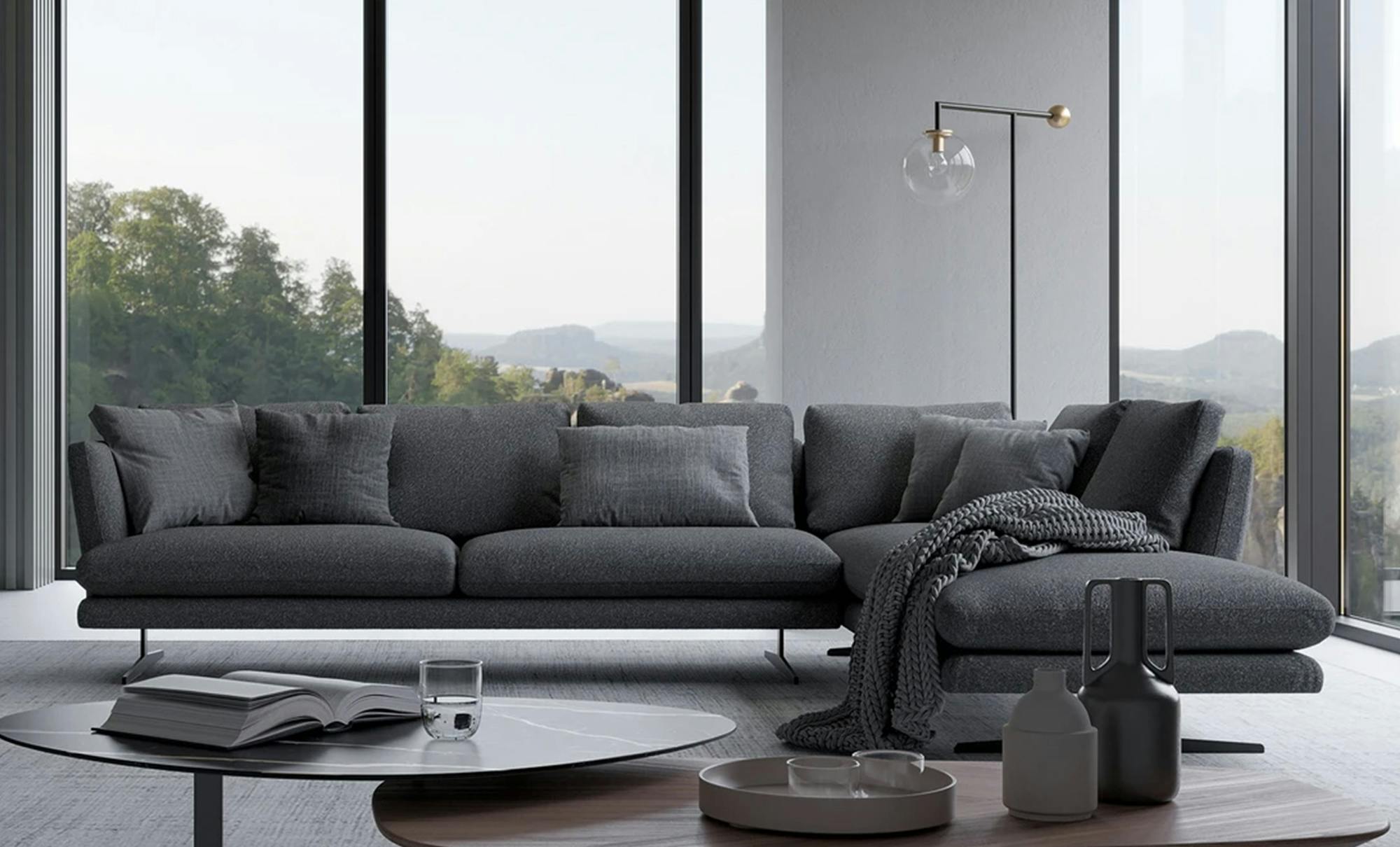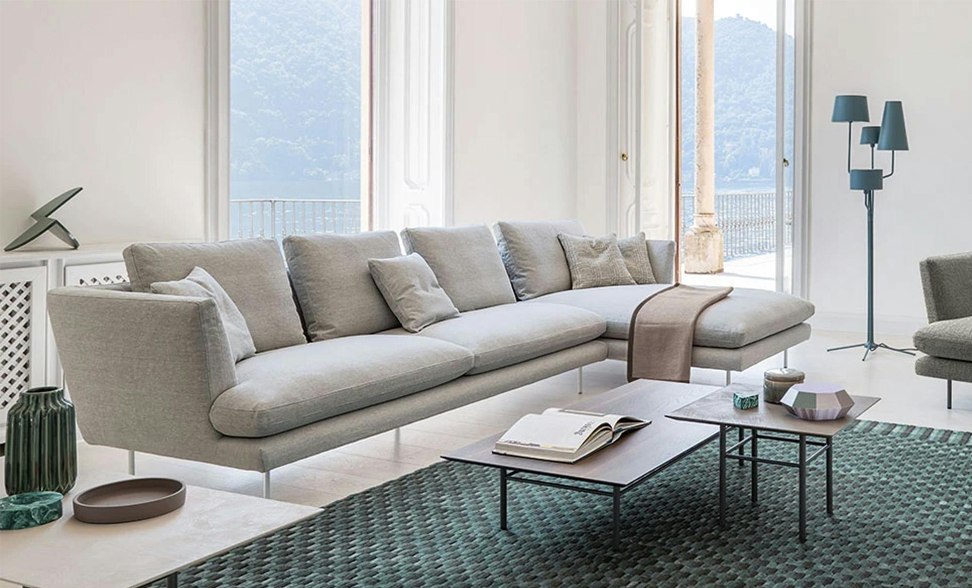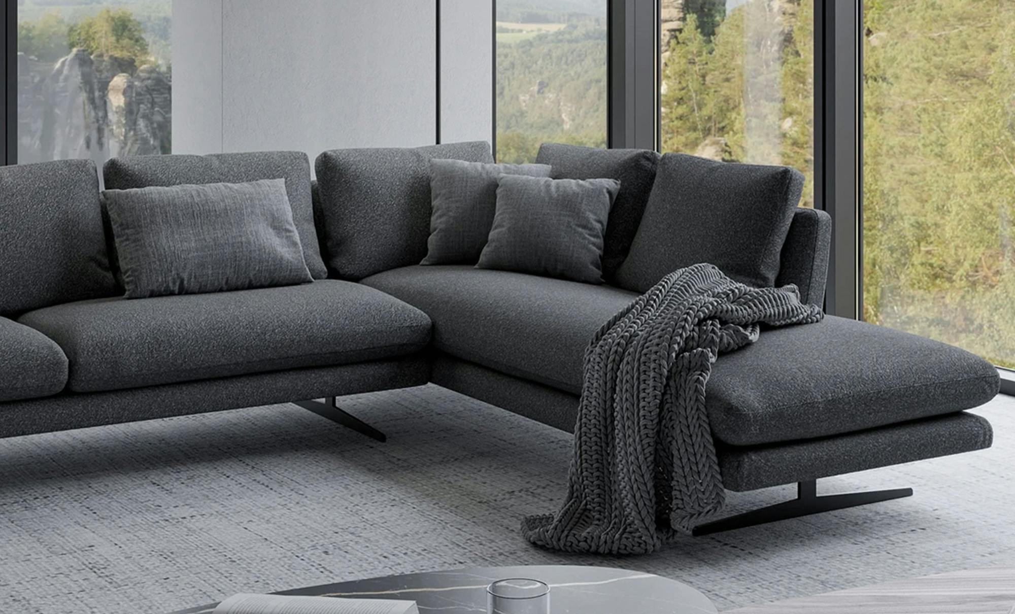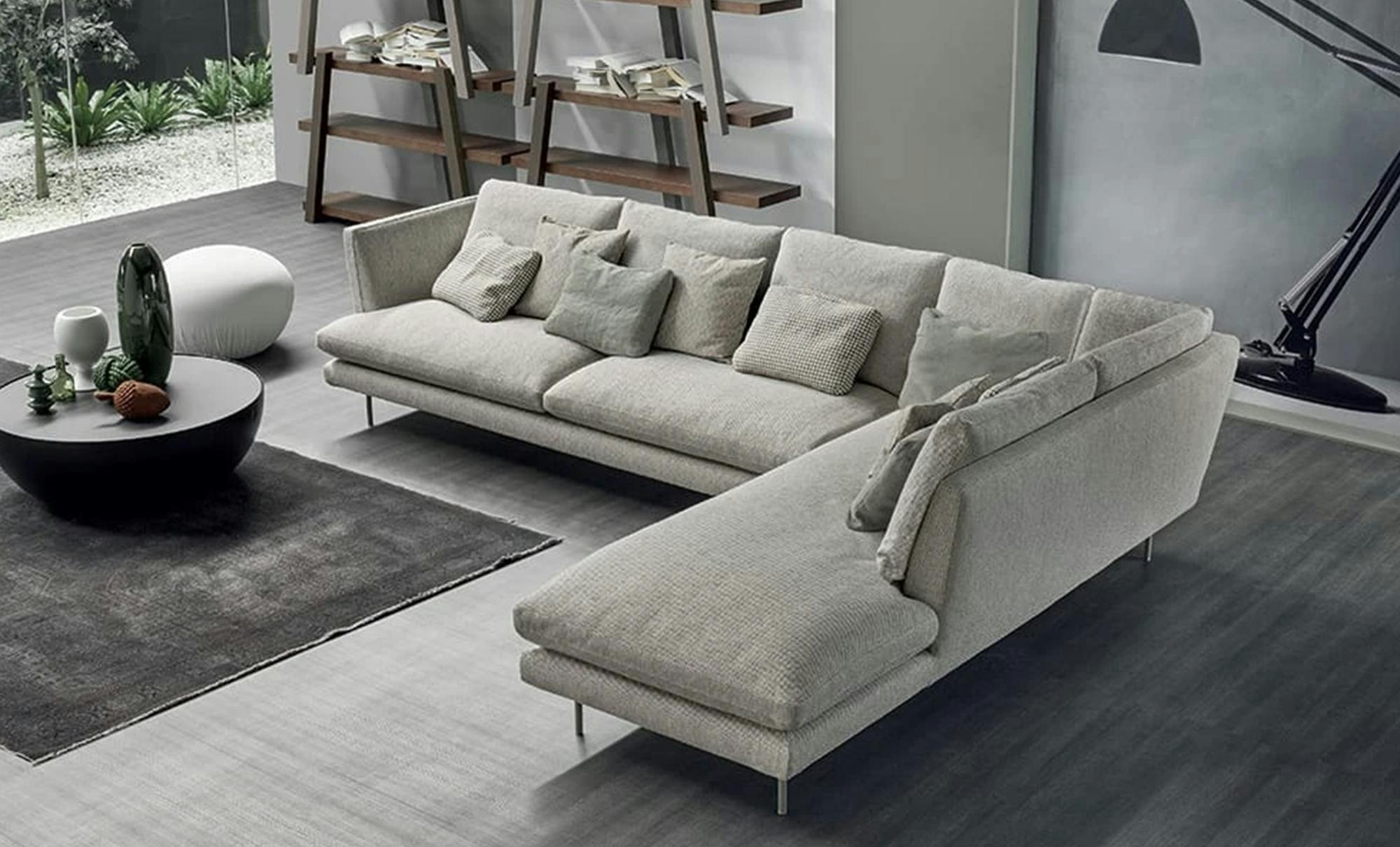 The Lars modern sofa features big cushions and conveys a sense of comfort and relaxation. The armrests are inclined outwardly; the upholstery, available in fabric or leather, is fully removable. The metal base, consisting of slender linear feet or a shaped base, guarantees a suspended look. The Lars sofas allow maximum modularity, thanks to the numerous elements which make it possible to create, in addition to the linear sofa, solutions with chaise longue or corners, in combination with comfortable poufs or coordinated armchairs.