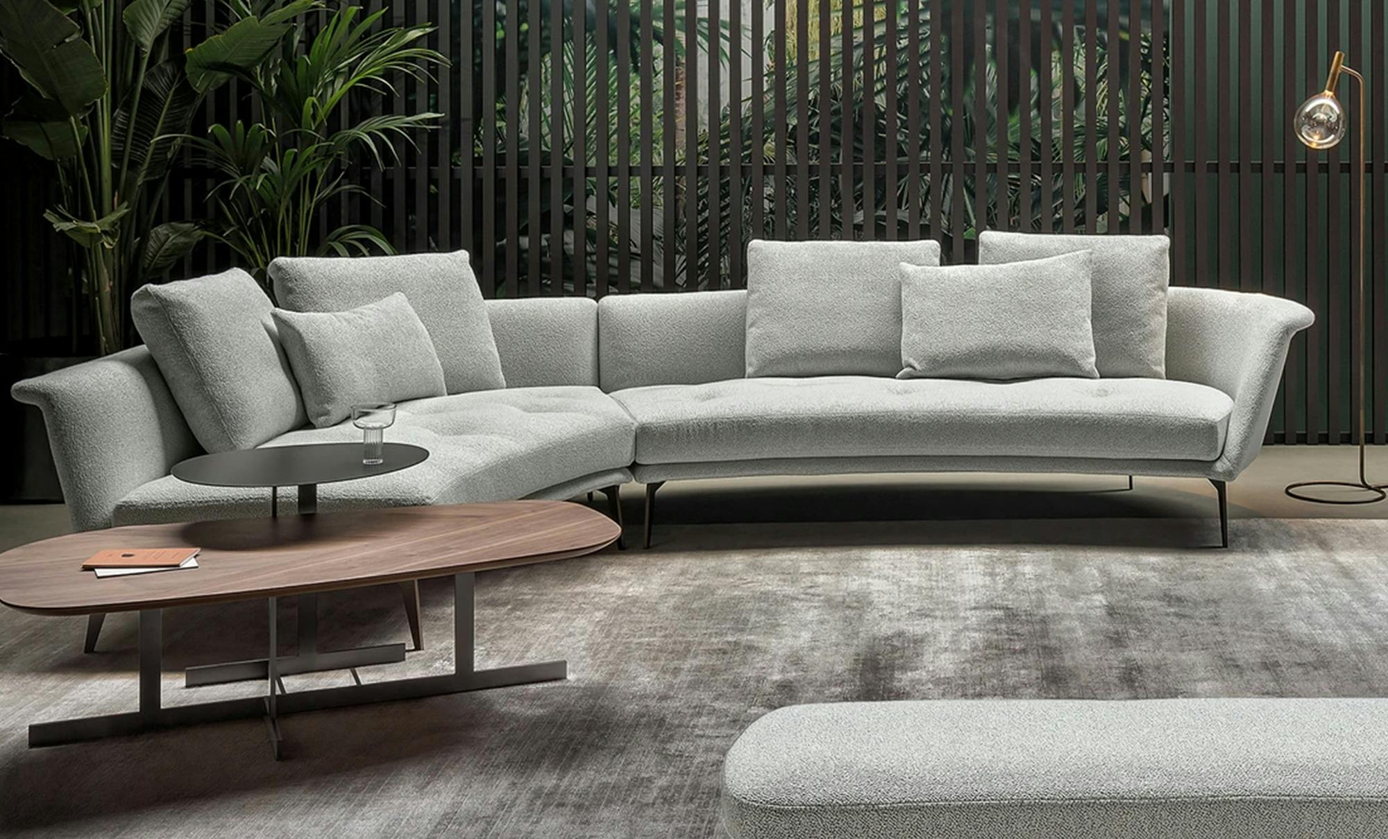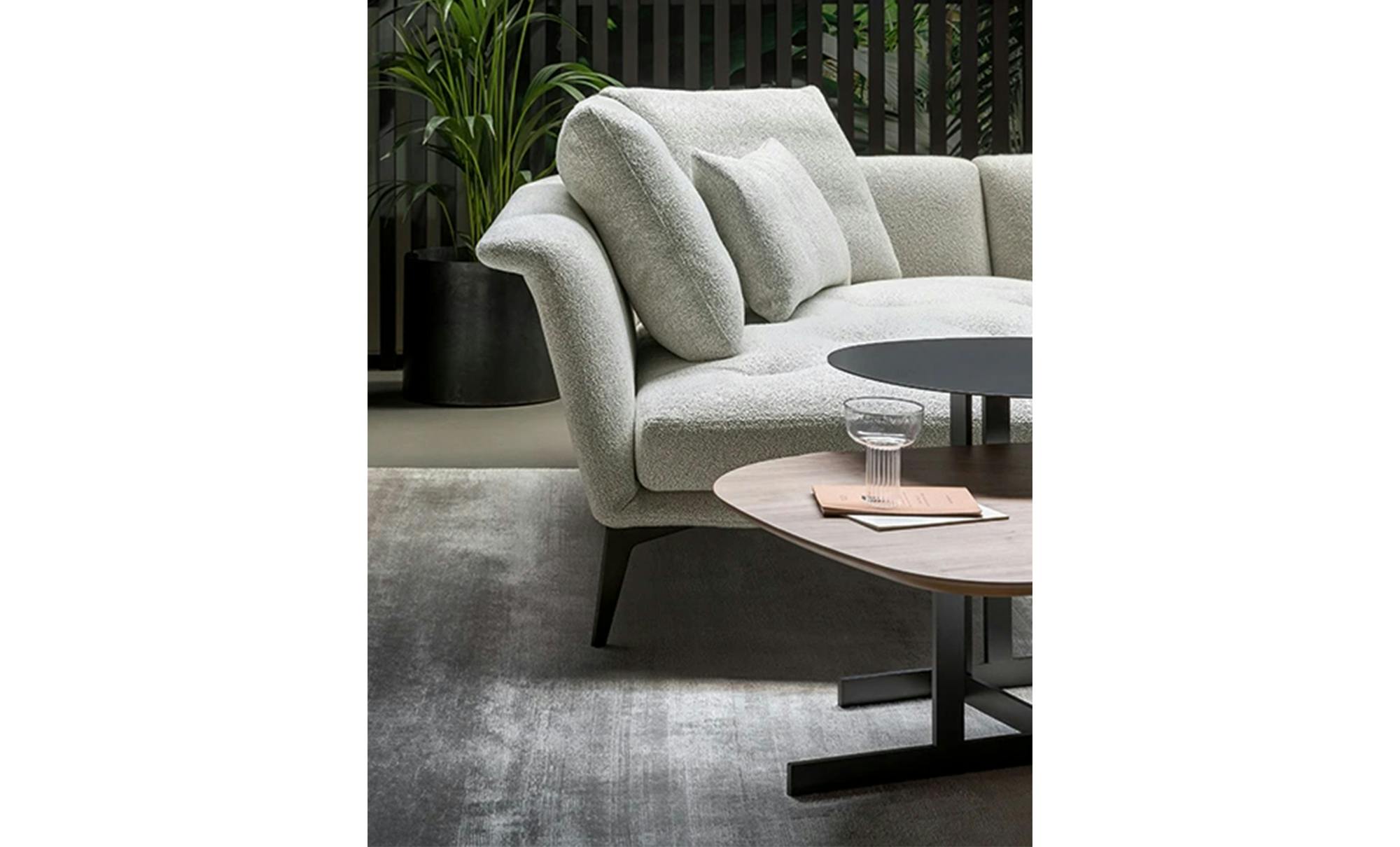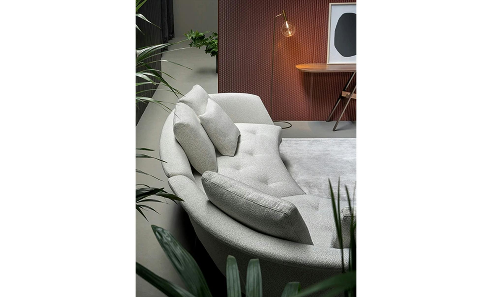 Lovy is a fixed sofa with an unusual silhouette: whose the semi-oval shape encourages. Perfect for contract settings, its particular shape makes it ideal for use in the middle of the room. In the modular version, the Lovy contemporary design sofa becomes even more customisable thanks to the various elements that allow it to be adapted to different spaces. The body is upholstered in removable fabric and the metal base is available in numerous colours and finishes. The vast success that this model has enjoyed has inspired Bonaldo to introduce a complete Lovy collection, thus making it possible to create perfectly coordinated environments with the same original style connotations: Lovy hi (with high backrest), Lovy low (with, low backrest), Lovy ego (quilted), Lovy armchair (with high or low backrest) and Lovy pouf (roud or square). The new and different modular elements allow the Lovy sofa to adapt to spaces and create customised solutions according to everyone's aesthetic needs.