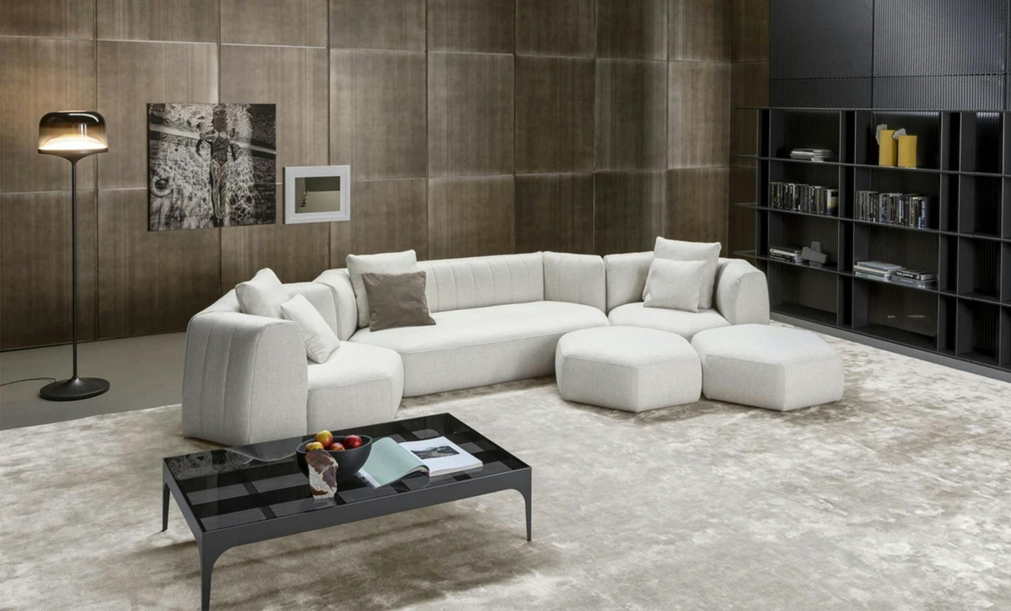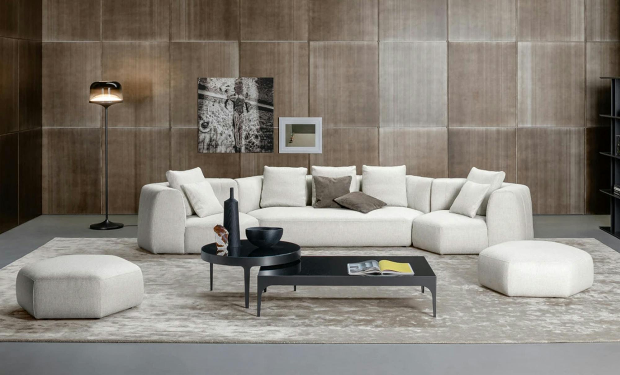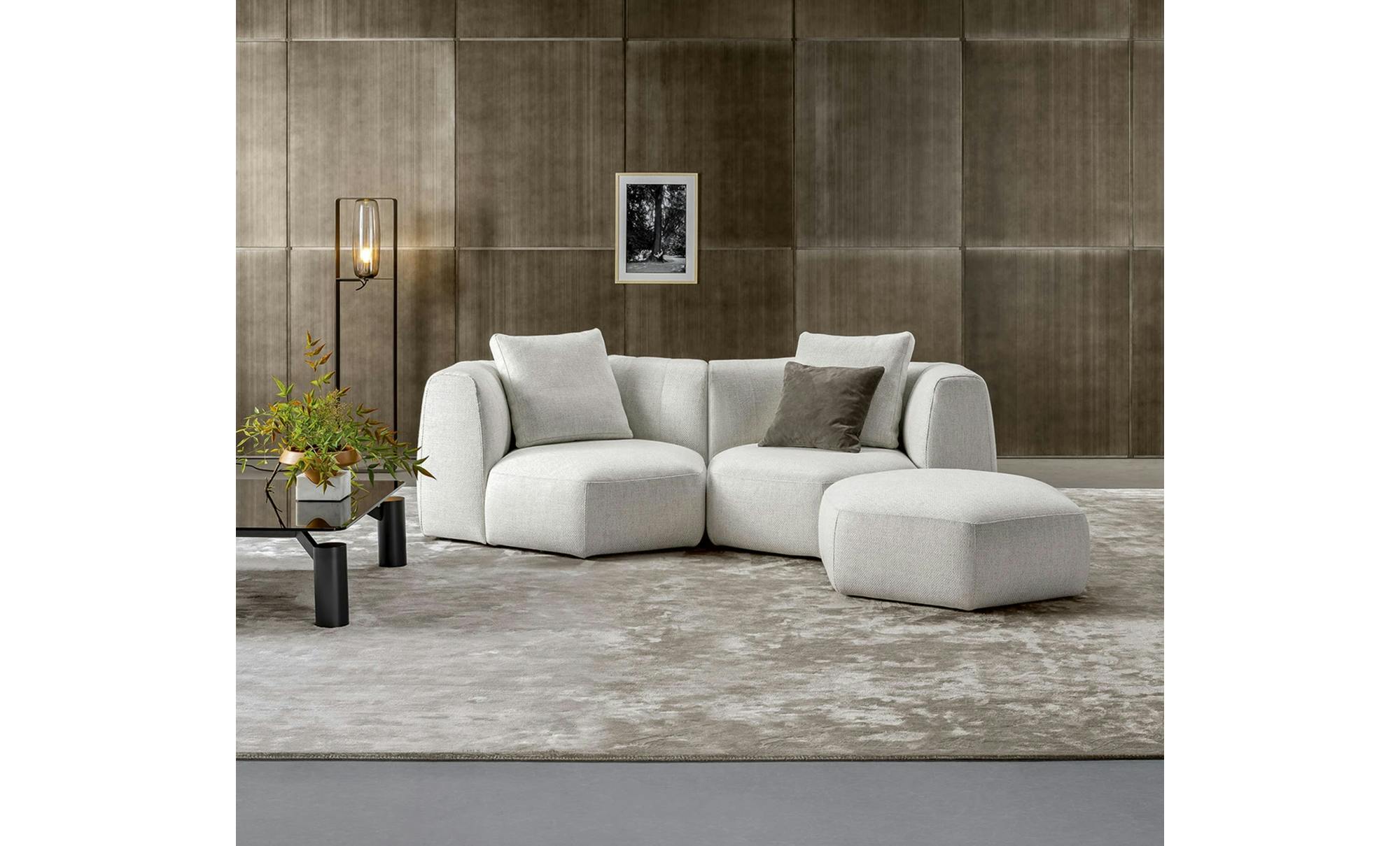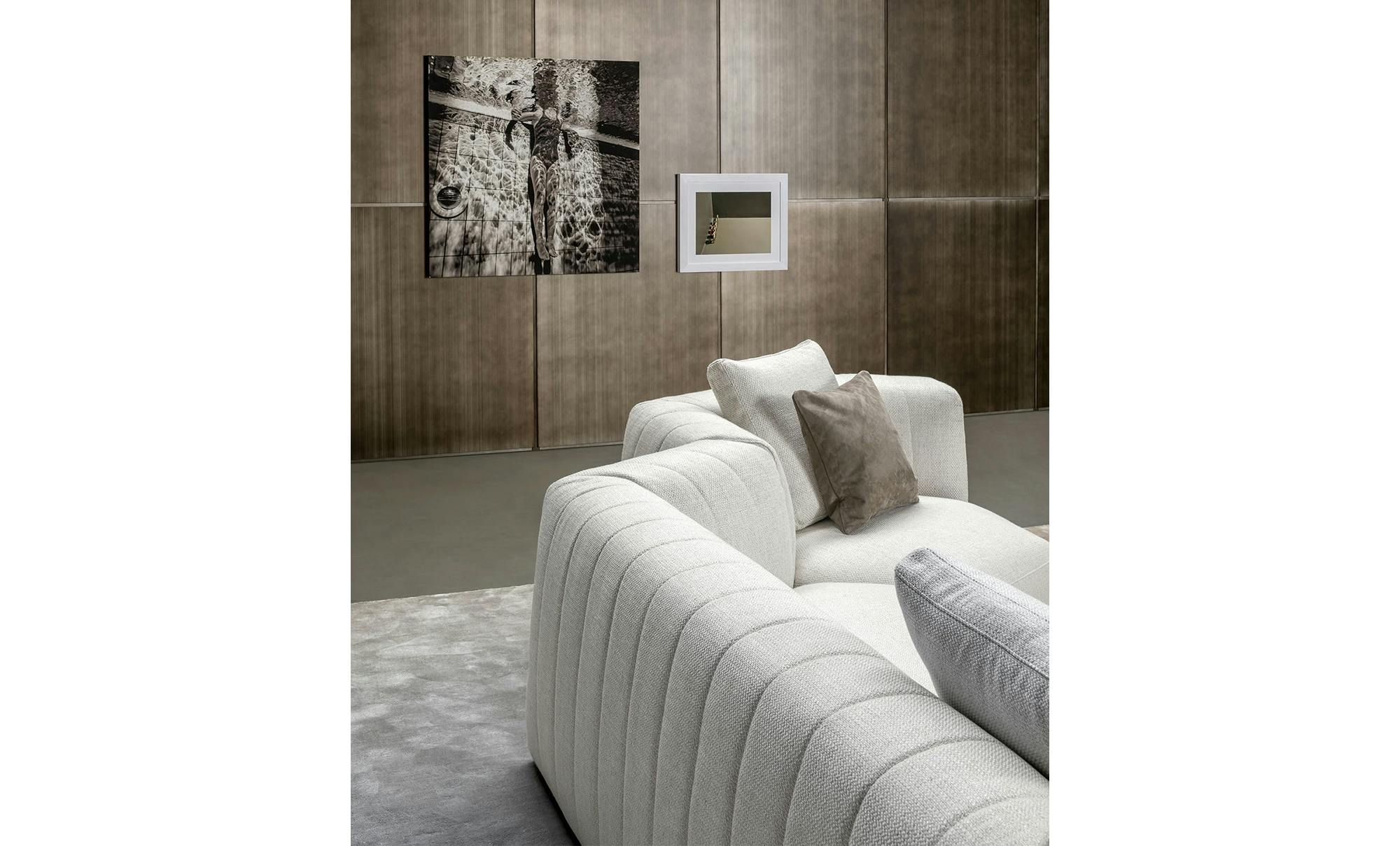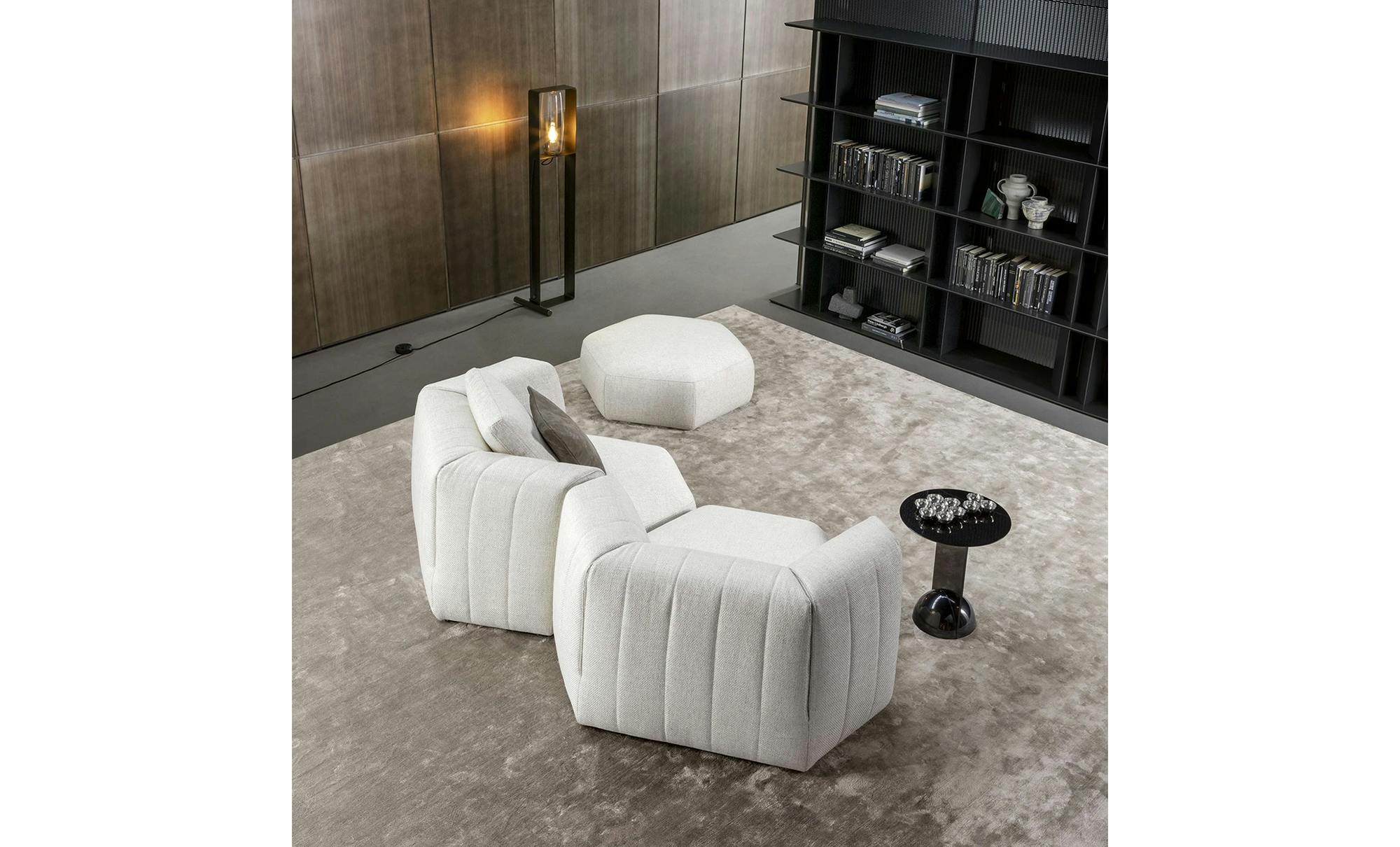Panorama New is a design modular sectional sofa capable of creating an unprecedented domestic landscape, offering spaces for meeting, islands of comfort and genuine refuges in which to abandon yourself in complete freedom. Its geometry stimulates the combination of different elements, transforming the living area into the warmest and most welcoming of environments. The Panorama New modular designer sofa collection is based on a particular element that can be considered the system’s real unit of measurement: the hexagonal shaped pouf which, with armrests and backrest, becomes an armchair and which in turn can be combined with other armchairs and sofas to obtain the most diverse configurations. As such it represents the maximum expression of personalisation and creativity. The cover, in fabric or leather, is completely removable and features a special quilting pattern on the armrests and backrest.