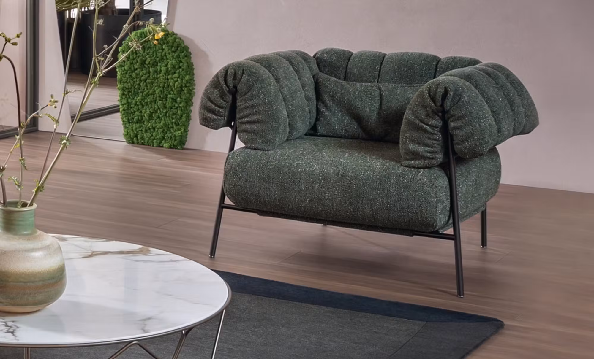 Mixing the ingredients together in an unprecedented manner achieves a new recipe, a new flavor, a new shape. A different concept of the cushion, the way of combining the various elements, the inspiration drawn from the shape of fabric swatches laid on the top of a cutting table and from the clothes hanging out to dry on the line on a sunny day: these are the ingredients for the new recipe devised for the Tirella armchair. At the level of the armrests, the metal frame is “enveloped” by cushions that become structural and concurrently decorative components of the armchair. The upholstery on the seat cushions and backrest/armrest is completely removable.