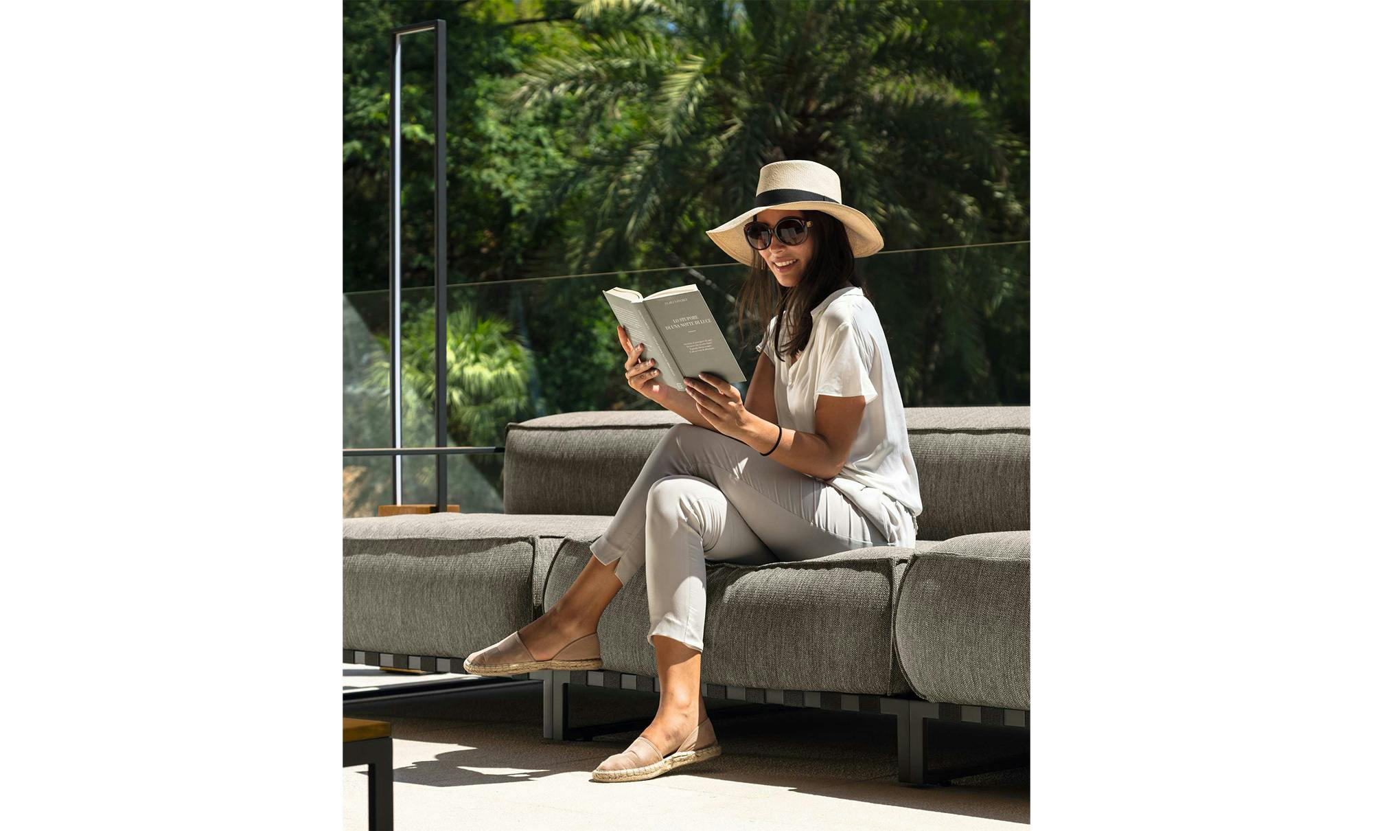 The Casilda lamp collection is a lightening element perfect to combine with the furniture of this collection. The geometric stainless steal frame powder coated match a solid iroko wood base.