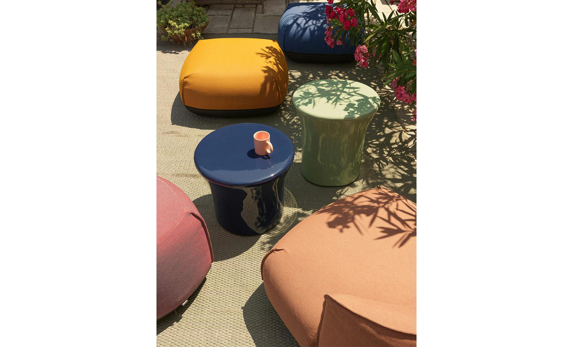 Brioni is a collection of poufs, lounge armchairs and daybeds named after a famous archipelago in the Adriatic Sea. They resemble small islands rising out of the sea. Their design features a dark band on the lower part that prevents direct contact between the ground and the upholstery. They are soft and comfortable thanks to flexible polyester padding and plastic slats, enclosed in water-resistant housing. Light and easy to move, they can be used to create countless compositions outdoors, experimenting with different shapes, colours and sizes.