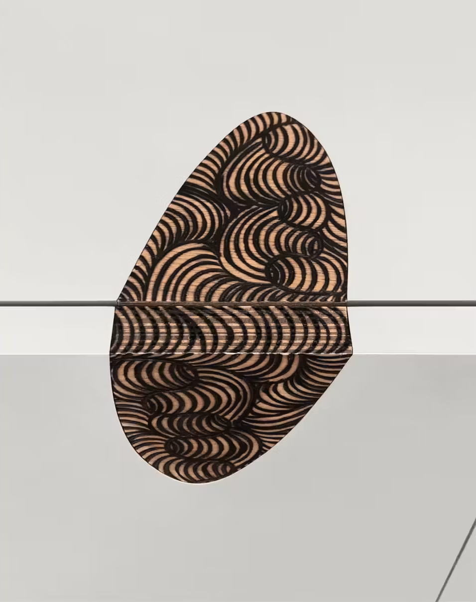 Tony’s Uluru – a grand piece. After spending many hours up close to Uluru, it was impossible not to be influenced by its presence. Many hours were spent observing the overall form - the varied shapes, hollows, flowing curves and ravines. 13 Pieces of Lulu Cooley’s Tali [sand dune] motif have been inserted into this piece. One simple curved shape has been elongated, expanded and contracted, and in places wrapped around the sideboard to emulate the shapes observed on Uluru. The piece has been finished within and on the back to help realise the mystery and full majesty of Uluru.