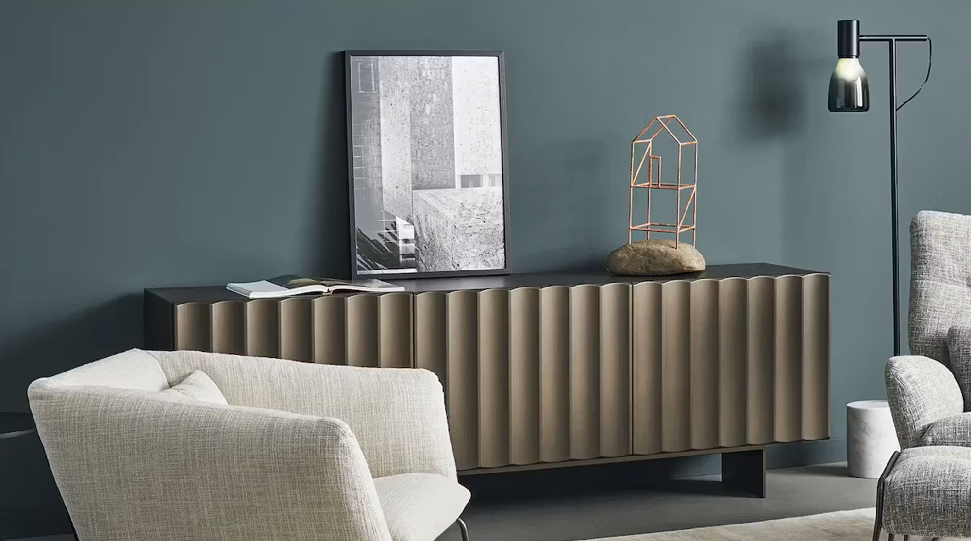 The signature feature of the Dorian sideboard is the wide vertical groove highlighted in its doors. The sense of movement thus created by the doors of the Dorian sideboard breaks up the linearity of the wall on which it rests, thus adding visual appeal to the intrinsic function of the sideboard. The doors and frame of this sideboard are made of wood, a material which adds elegance to the overall look, painted in white, bronze or lead finishes. The base is available in the version with two feet for a lighter visual effect or in the version with a plinth for more compact look.