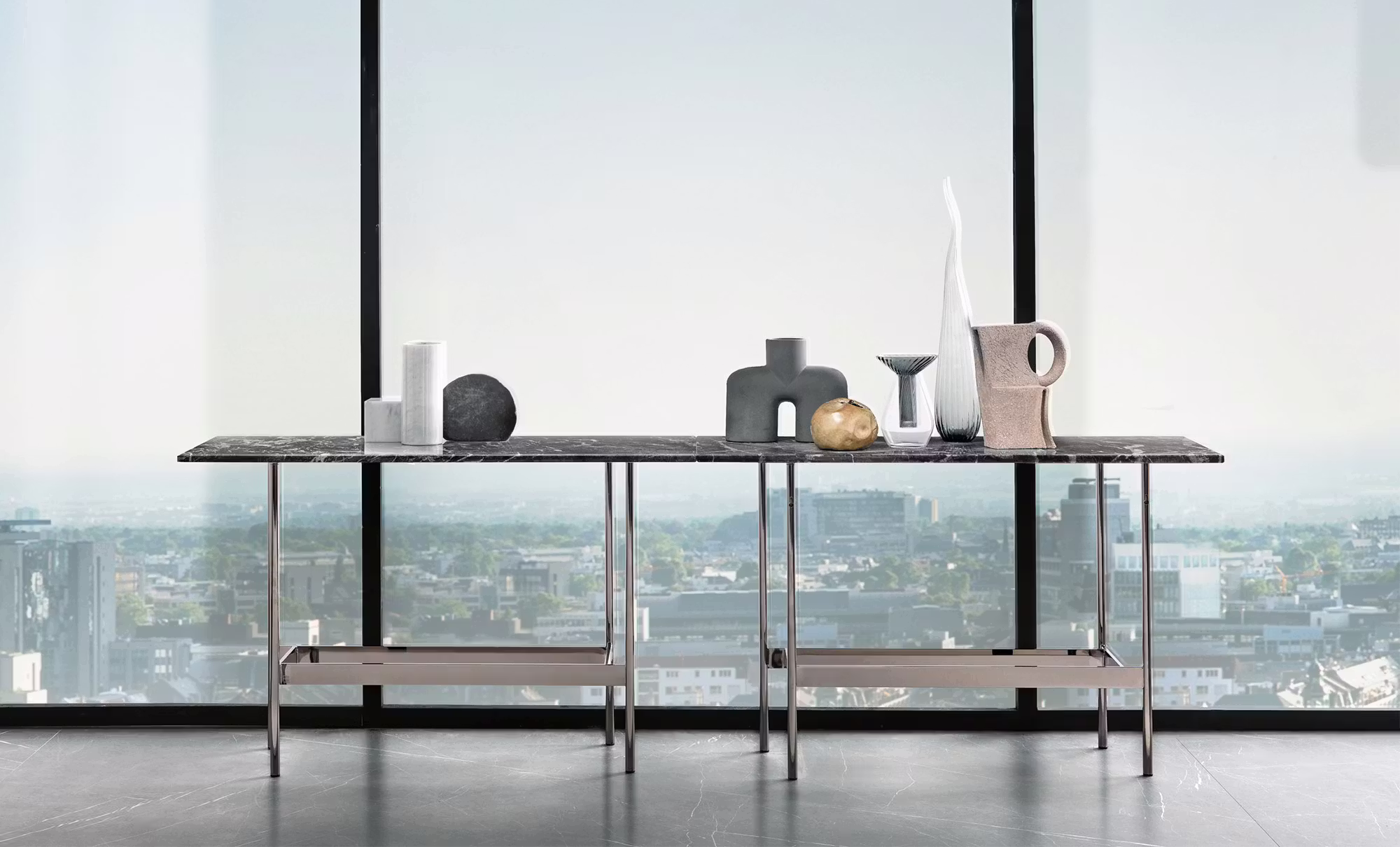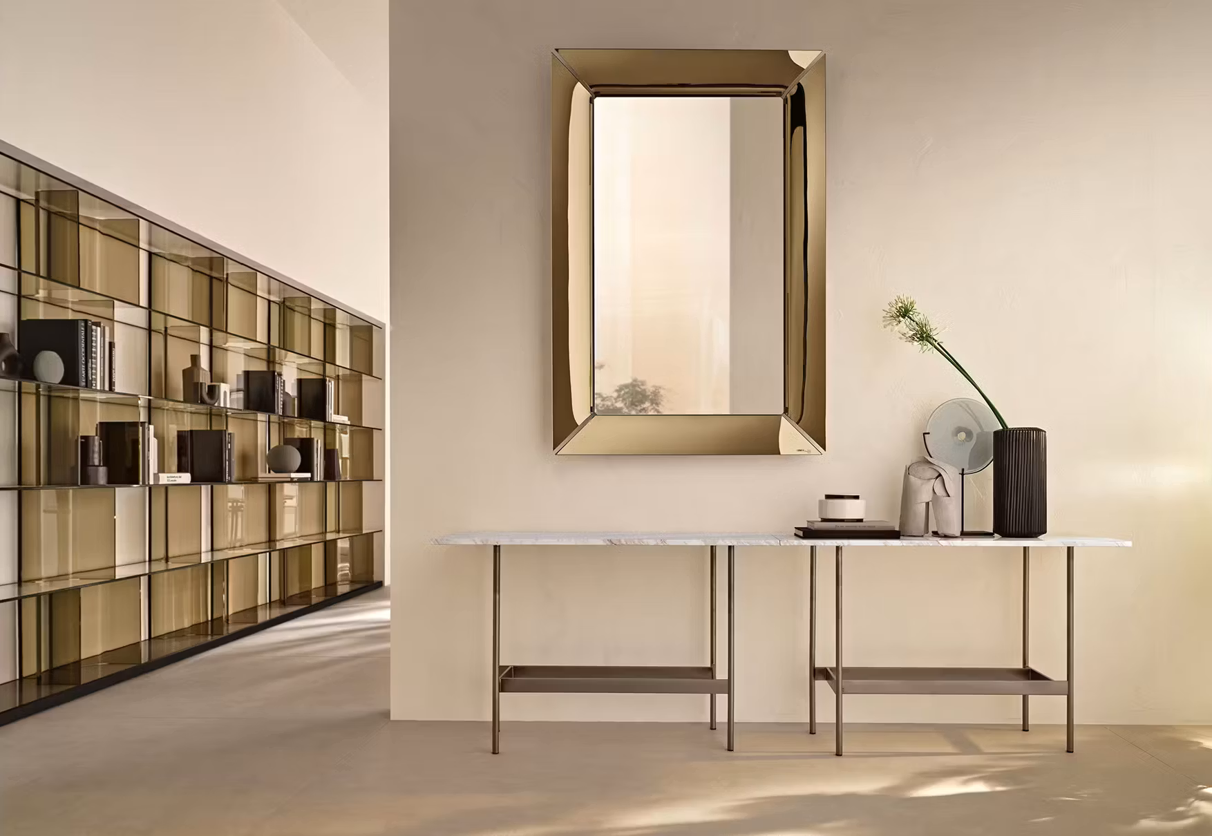 The console is the elegant detail in a transit area, a surprise where least expected, the break in the pattern that allows you to focus on the important details. Glass consoles, in particular, showcase mementos, keepsakes and emotions without concealing them. The judicious use of glass, in fact, minimise the top surface and enhances the beauty of the objects upon it. The console as a functional addition to the room: glass reaches where architecture cannot go. Because beautiful things deserve the appropriate attention.